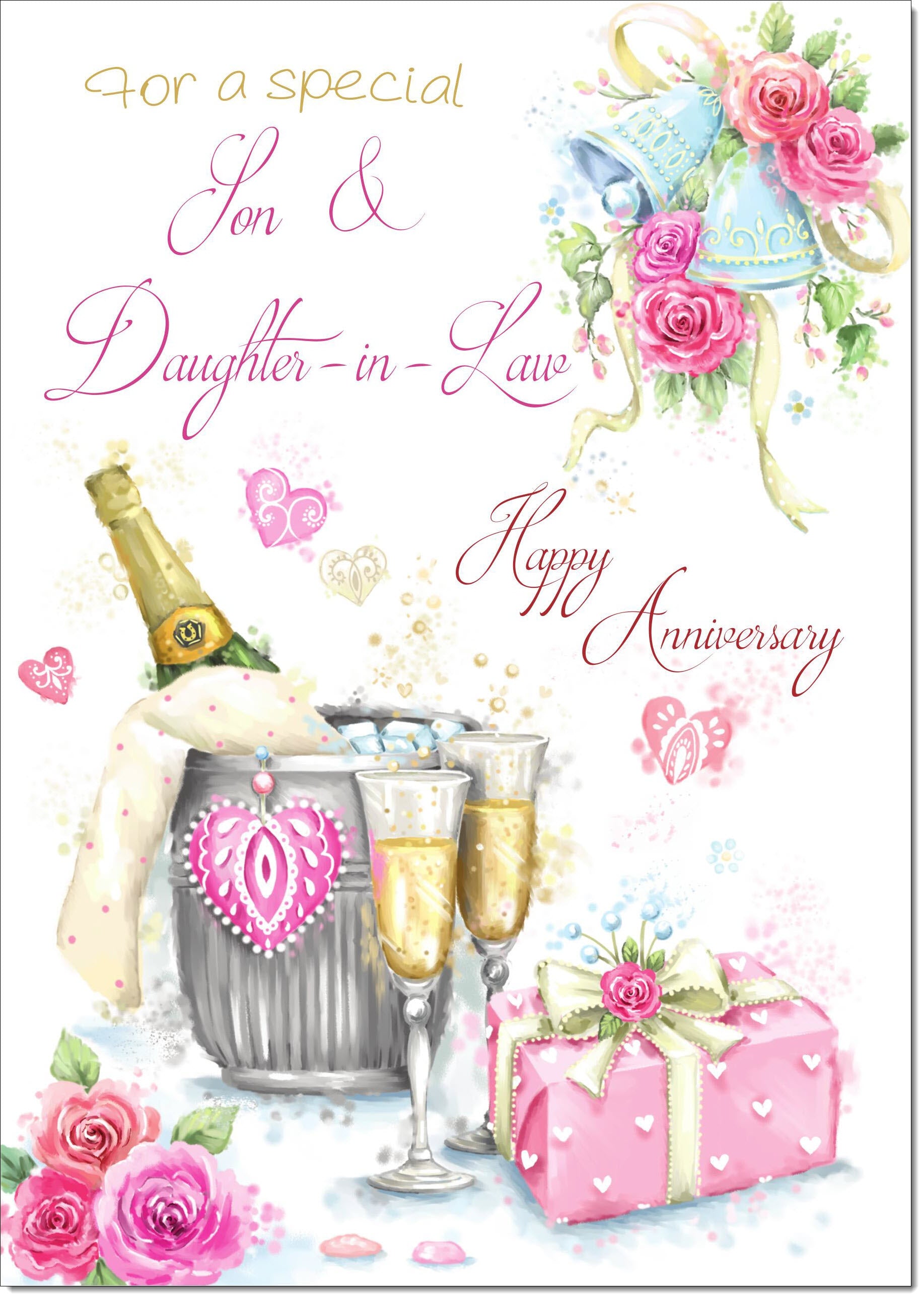 Son & Daughter-in-Law Wedding Anniversary Card Champagne Bucket