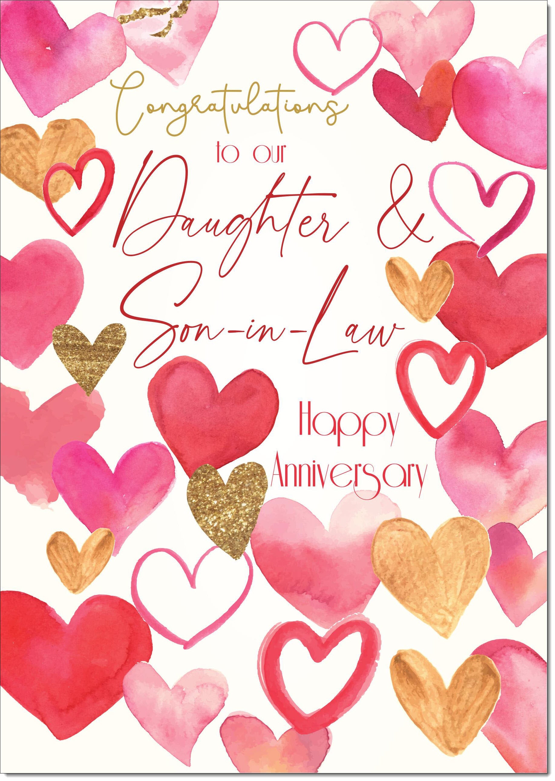 Daughter & Son-in-Law Wedding Anniversary Card Love Hearts