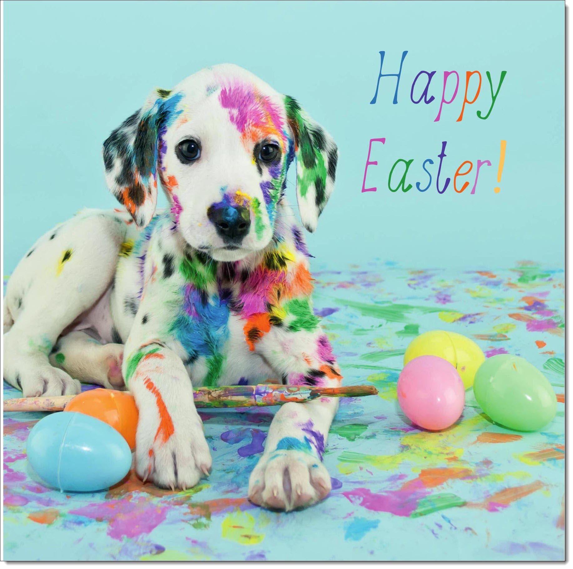 Easter Card Dalmation Puppy and Painted Easter Eggs