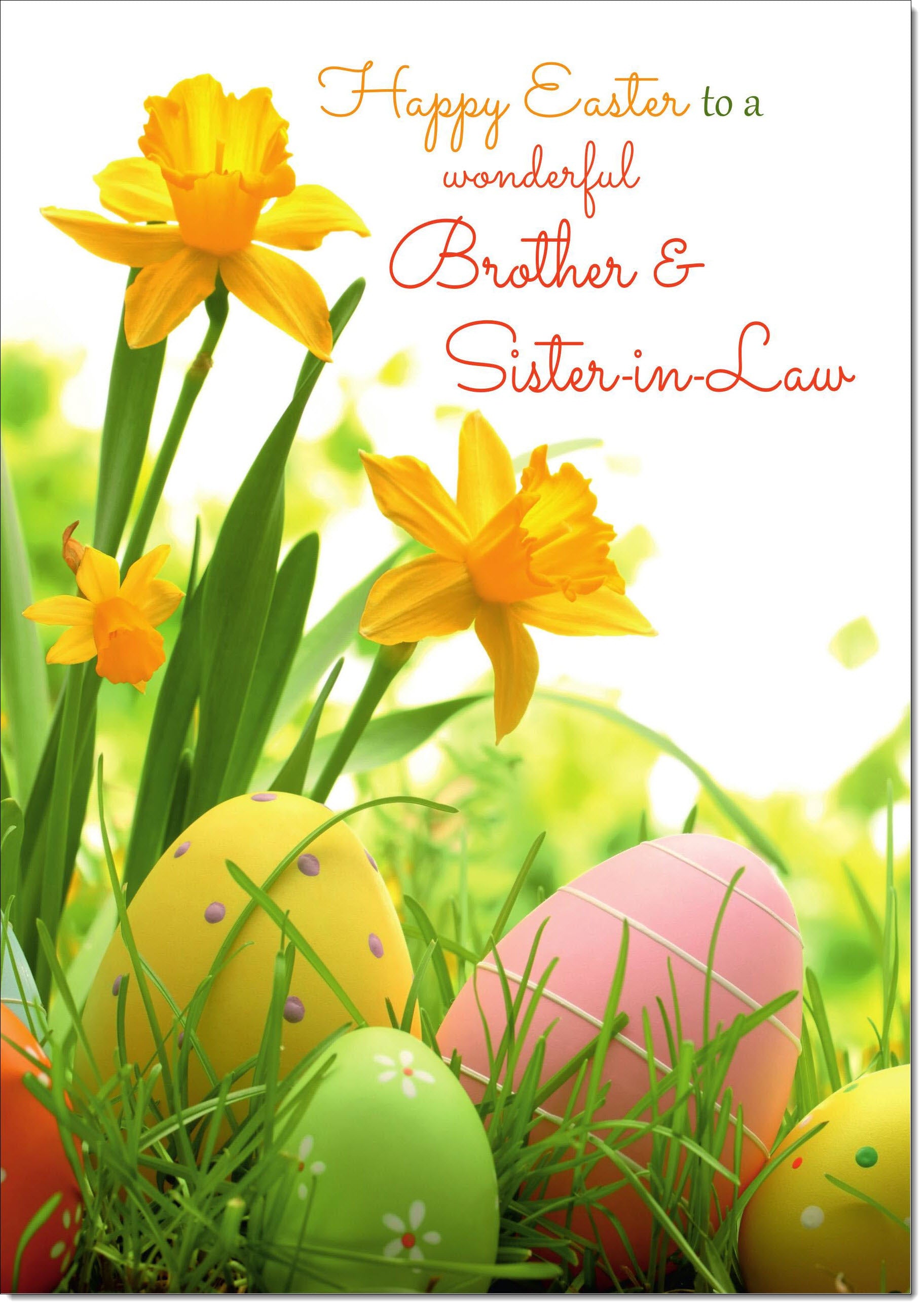 Brother & Sister-in-Law Easter Card Daffodils with Eggs