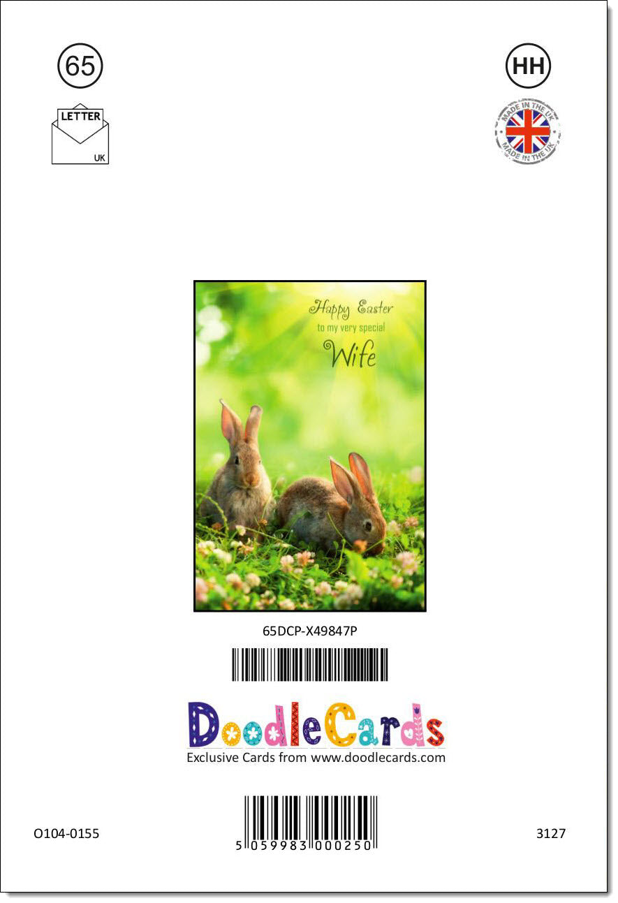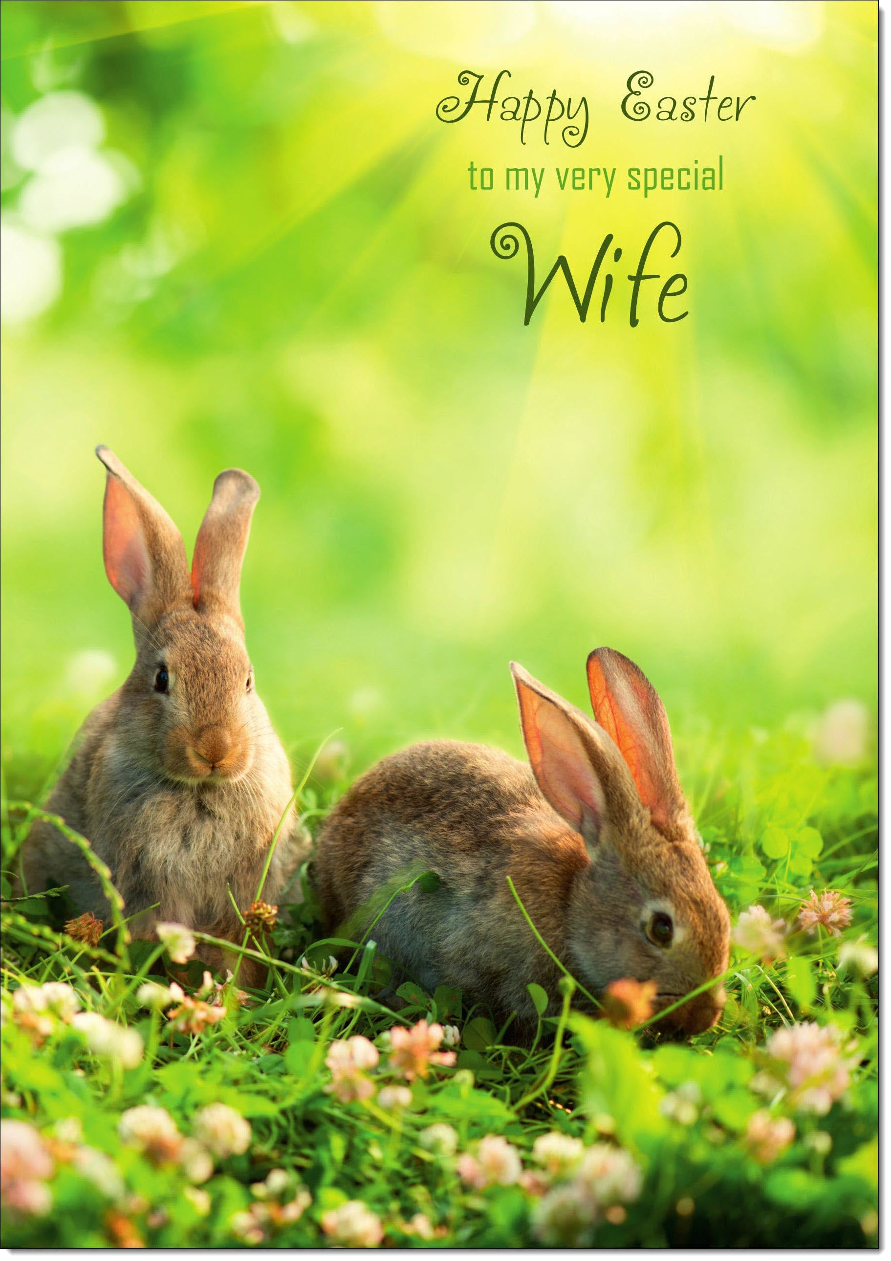 Wife Easter Card Two Bunnies on Grass