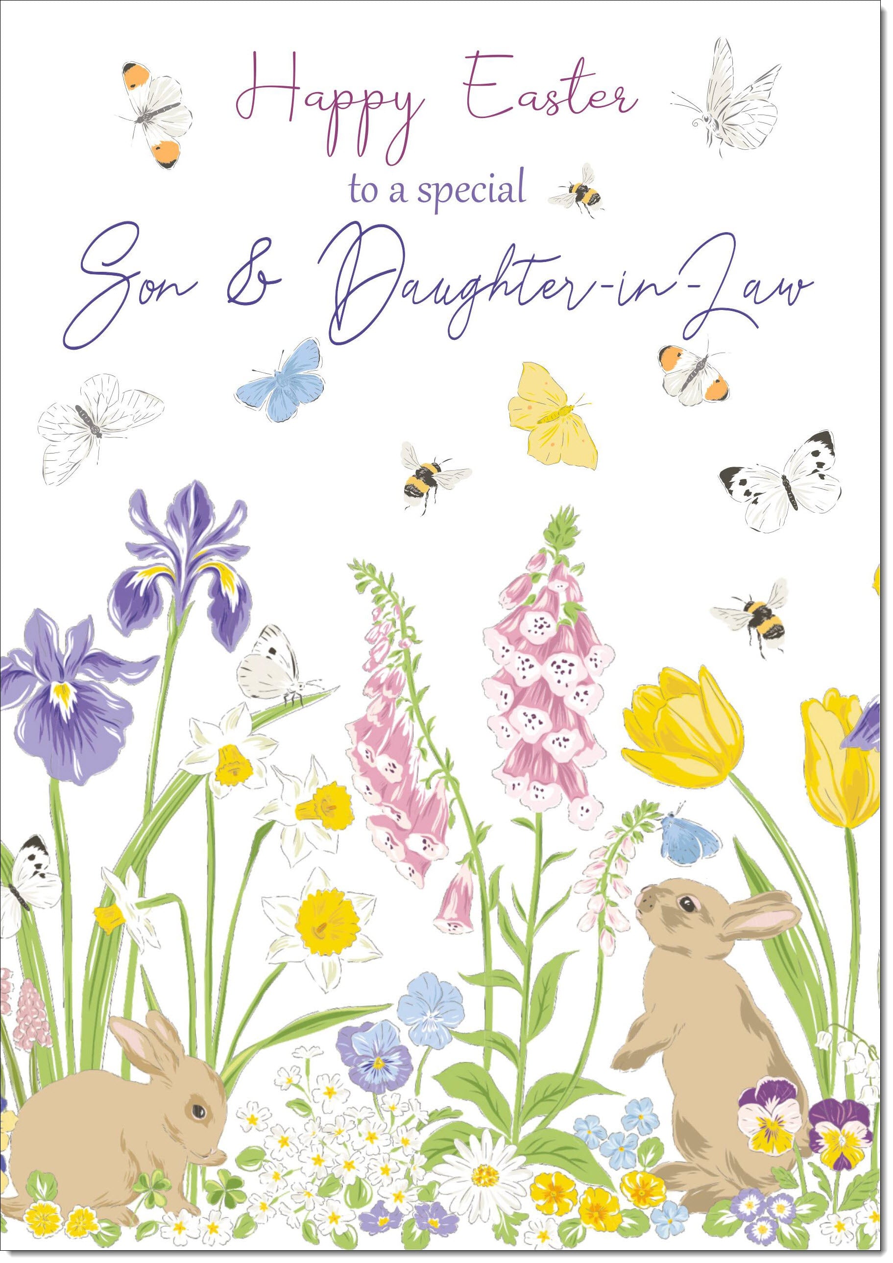Son & Daughter-in-Law Easter Card Spring Flowers with Bunnies