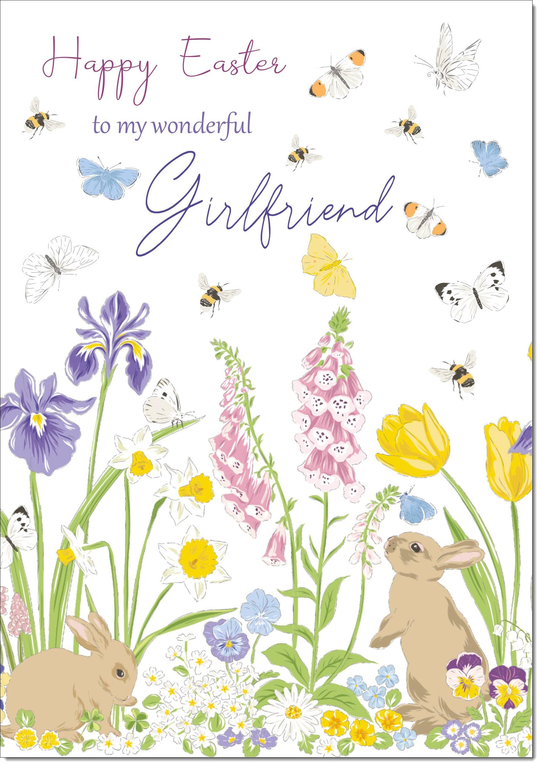 Girlfriend Easter Card Spring Flowers with Bunnies