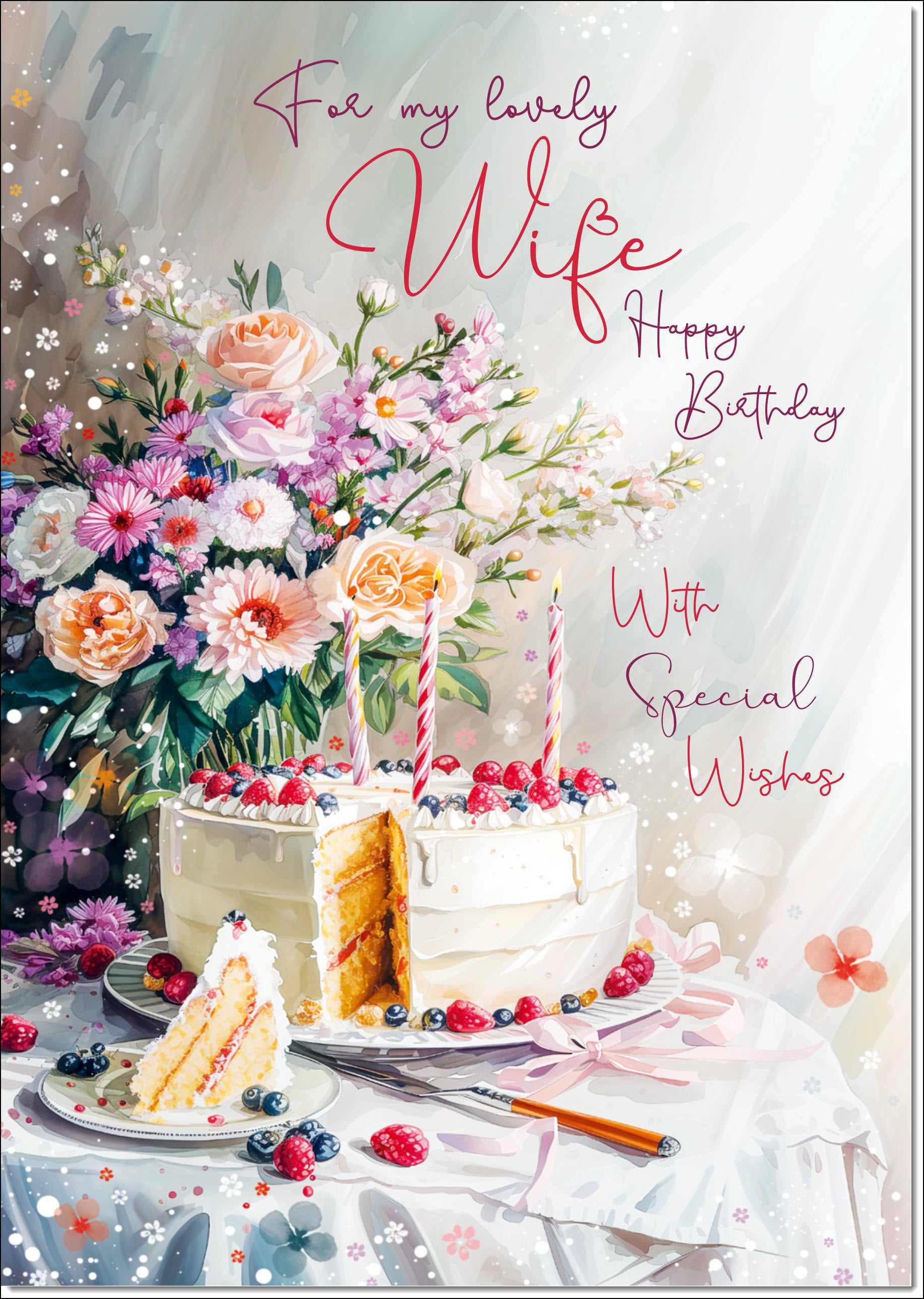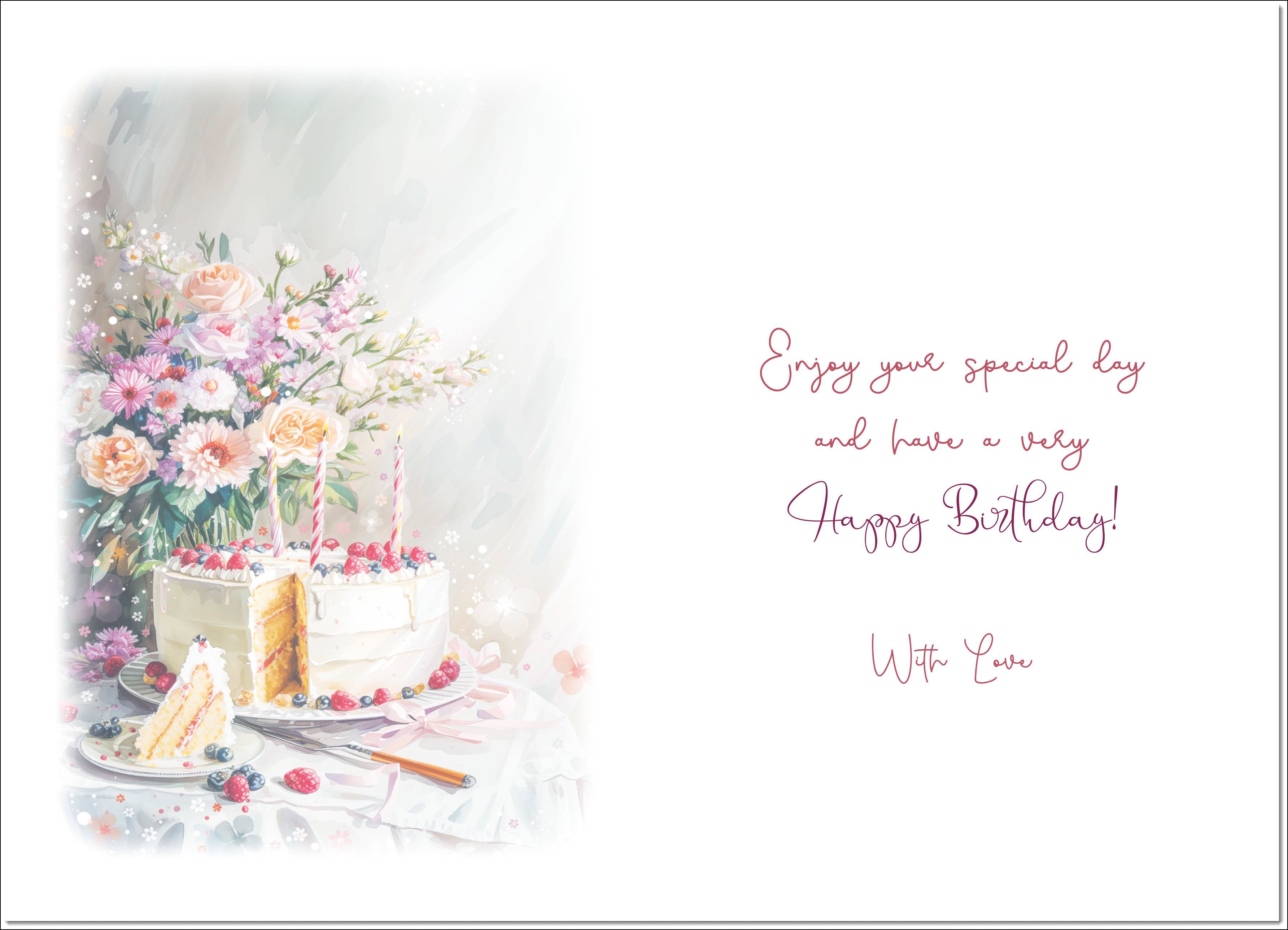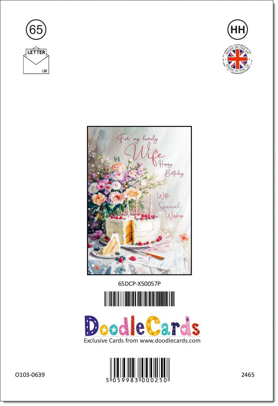 Wife Birthday Card Birthday Cake and Flowers
