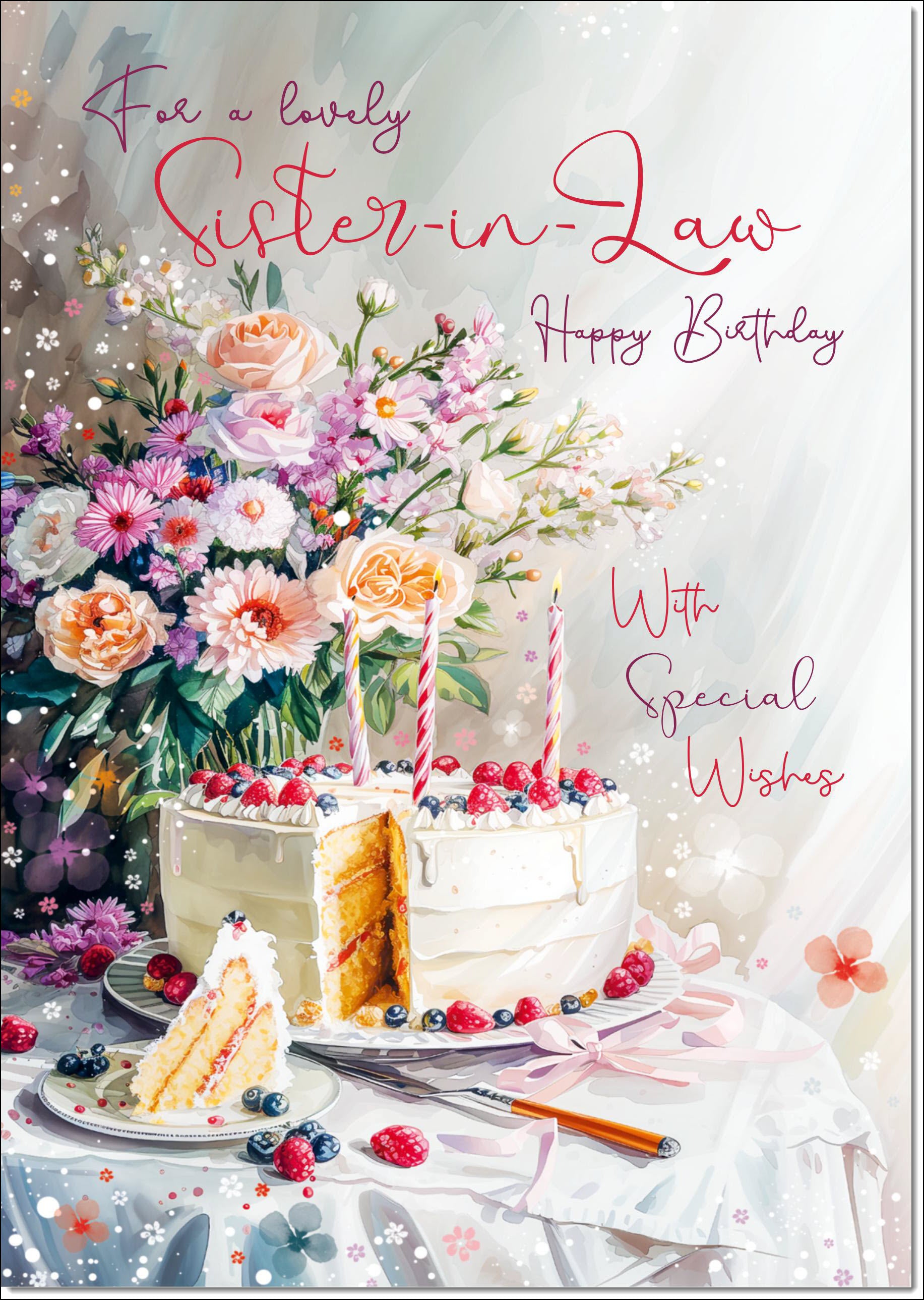 Sister-in-Law Birthday Card Birthday Cake and Flowers