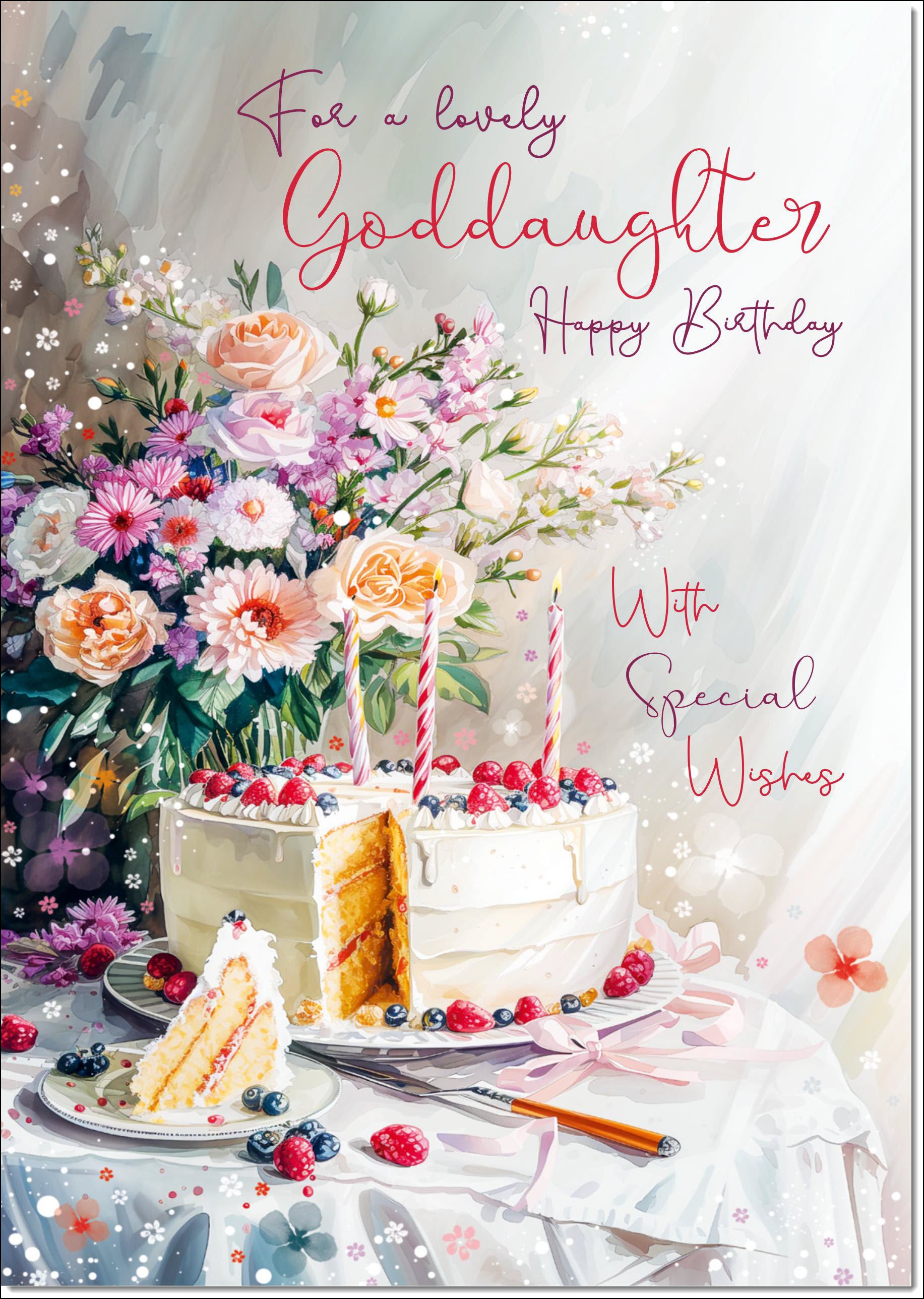 Goddaughter Birthday Card Birthday Cake and Flowers