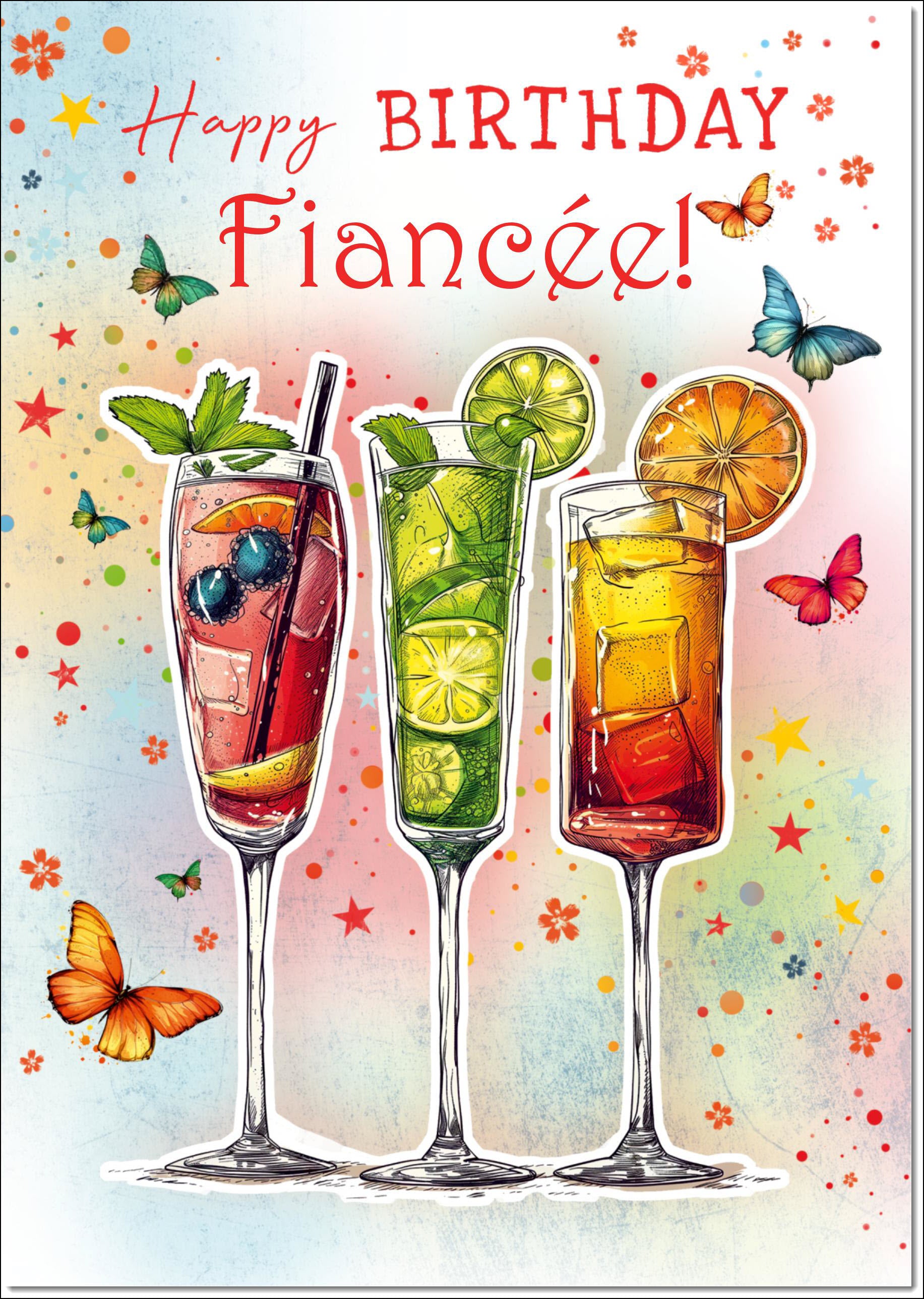 Fiancee Birthday Card Cocktails and Butterflies