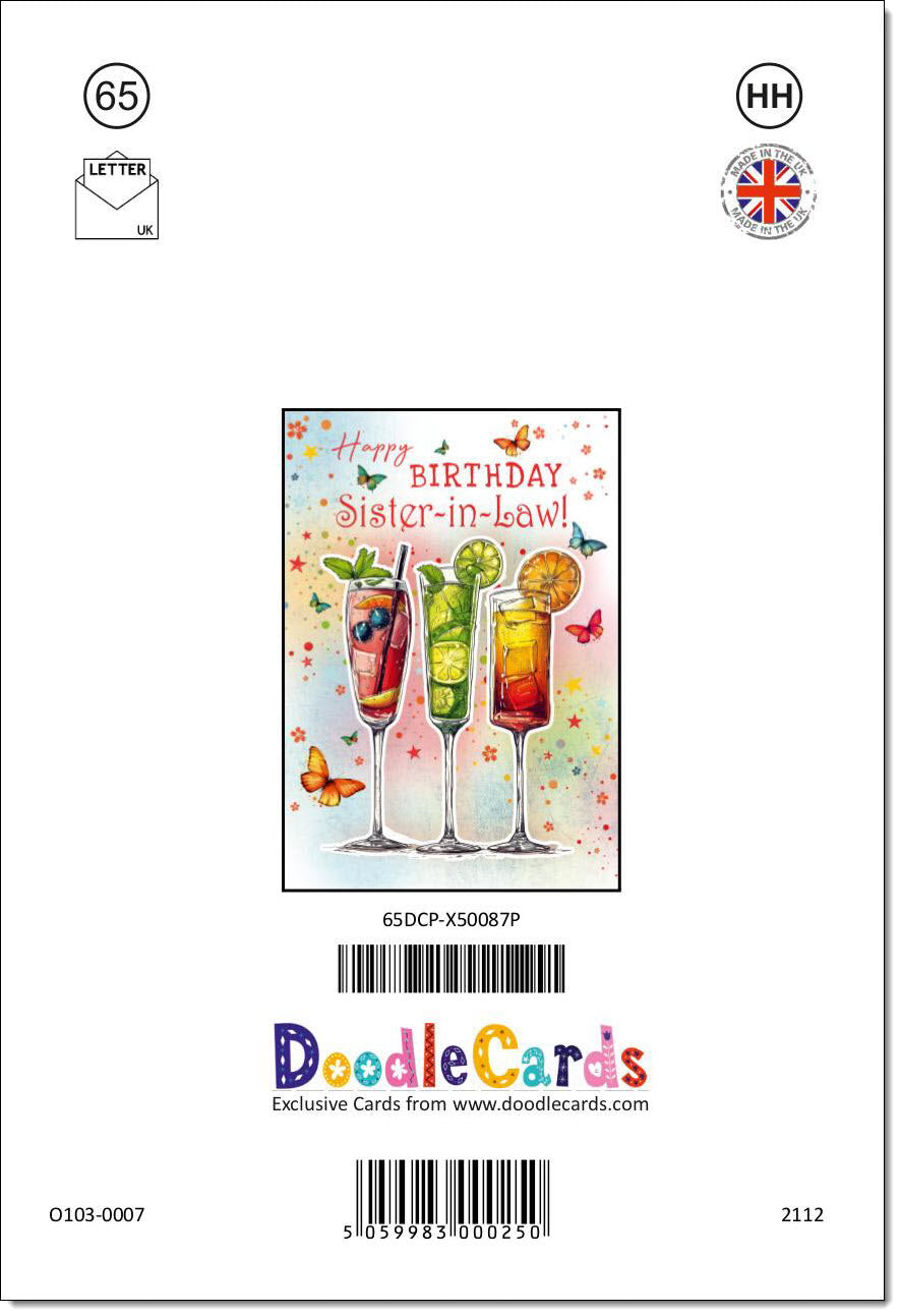 Sister-in-Law Birthday Card Cocktails and Butterflies