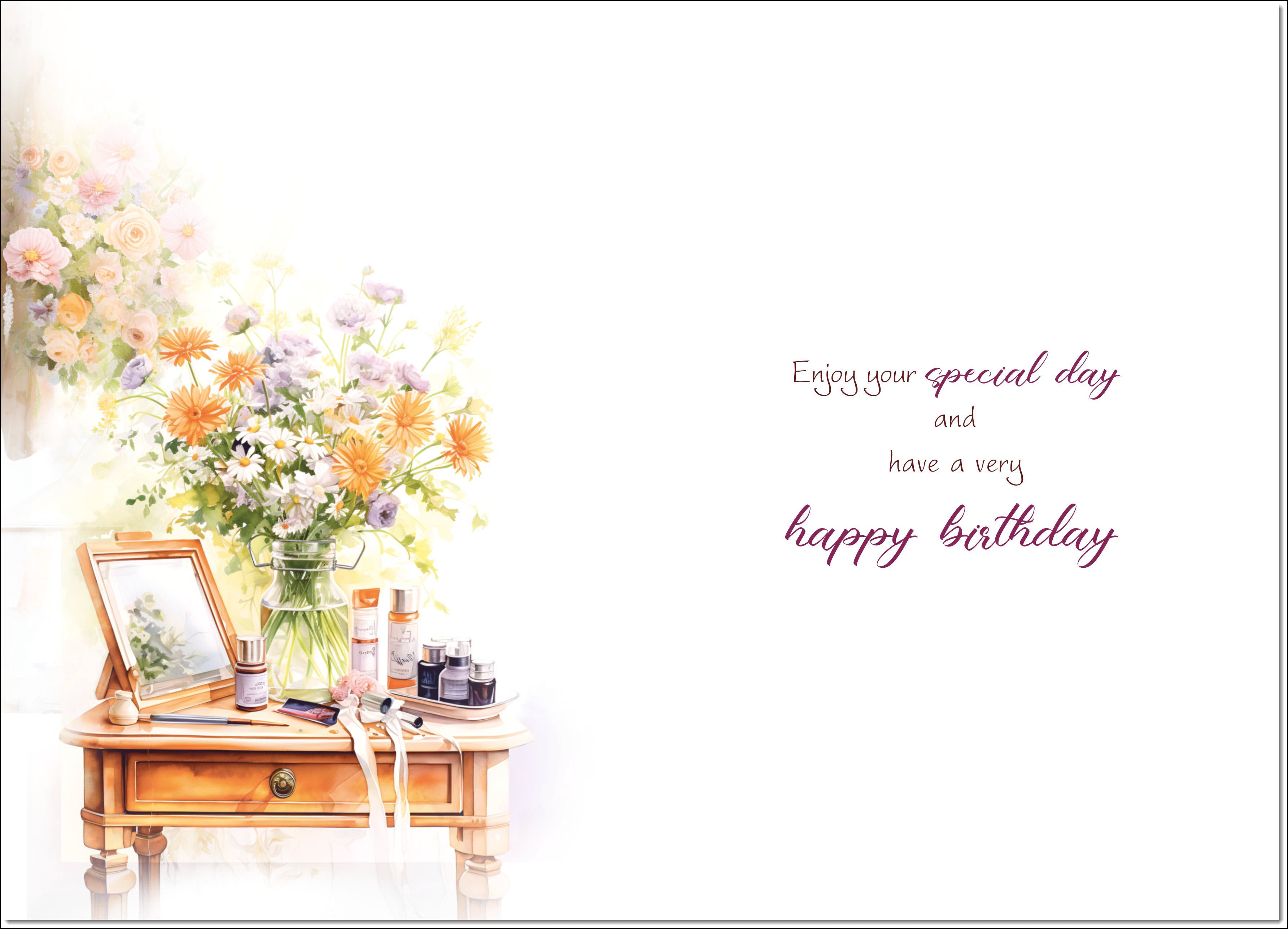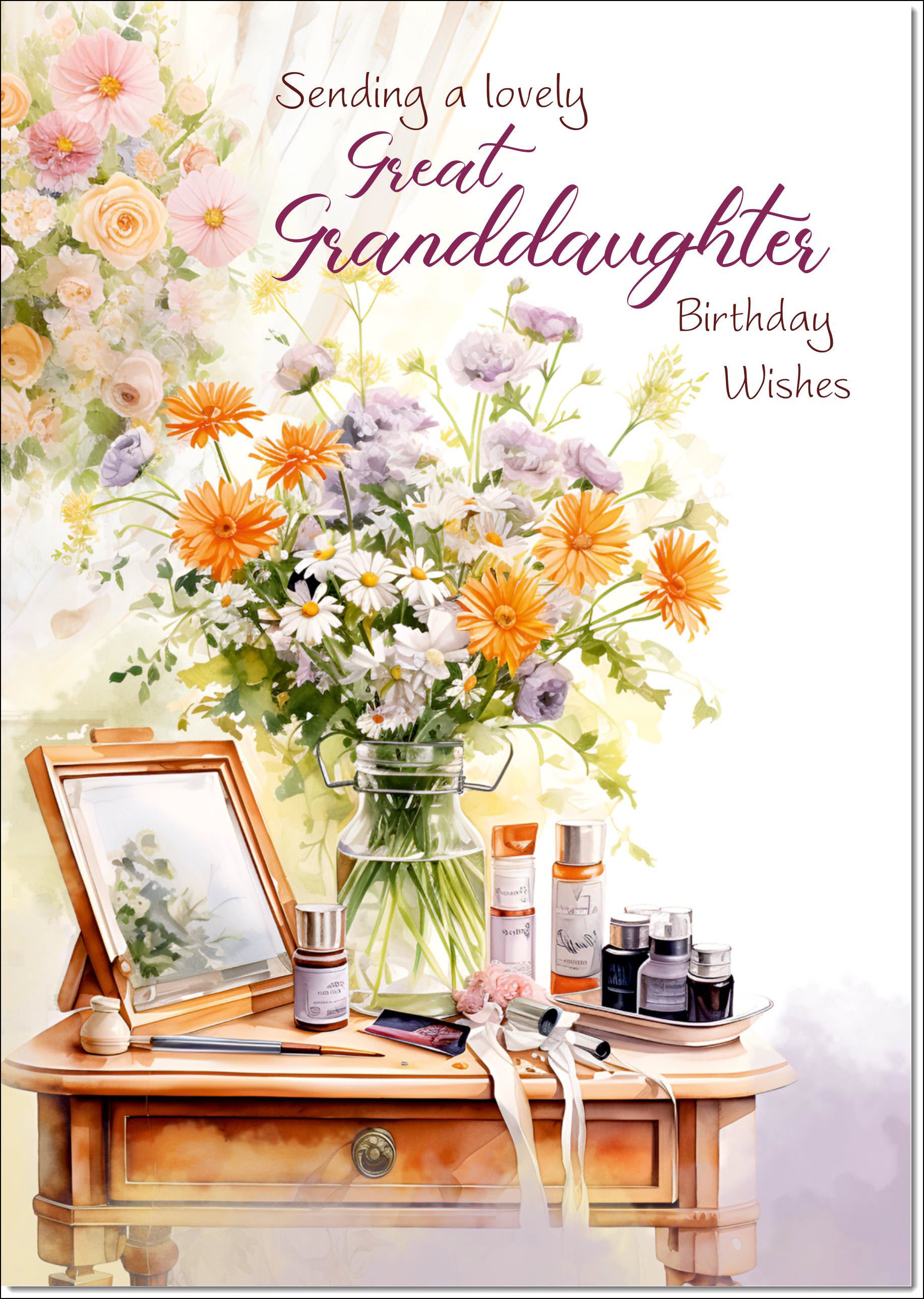 Great Granddaughter Birthday Card Dressing Table Bouquet