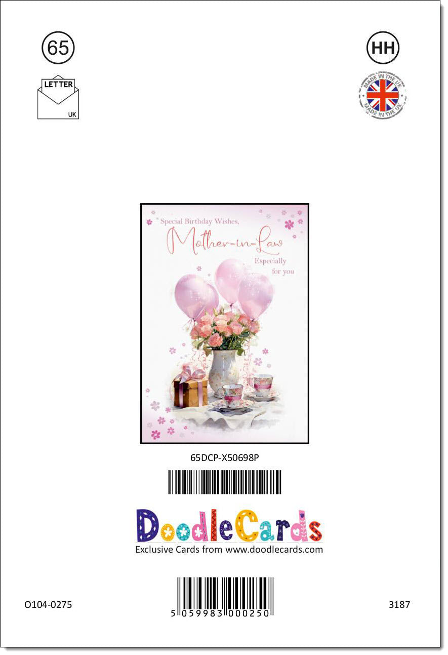 Mother-in-Law Birthday Card Tea Party and Balloons