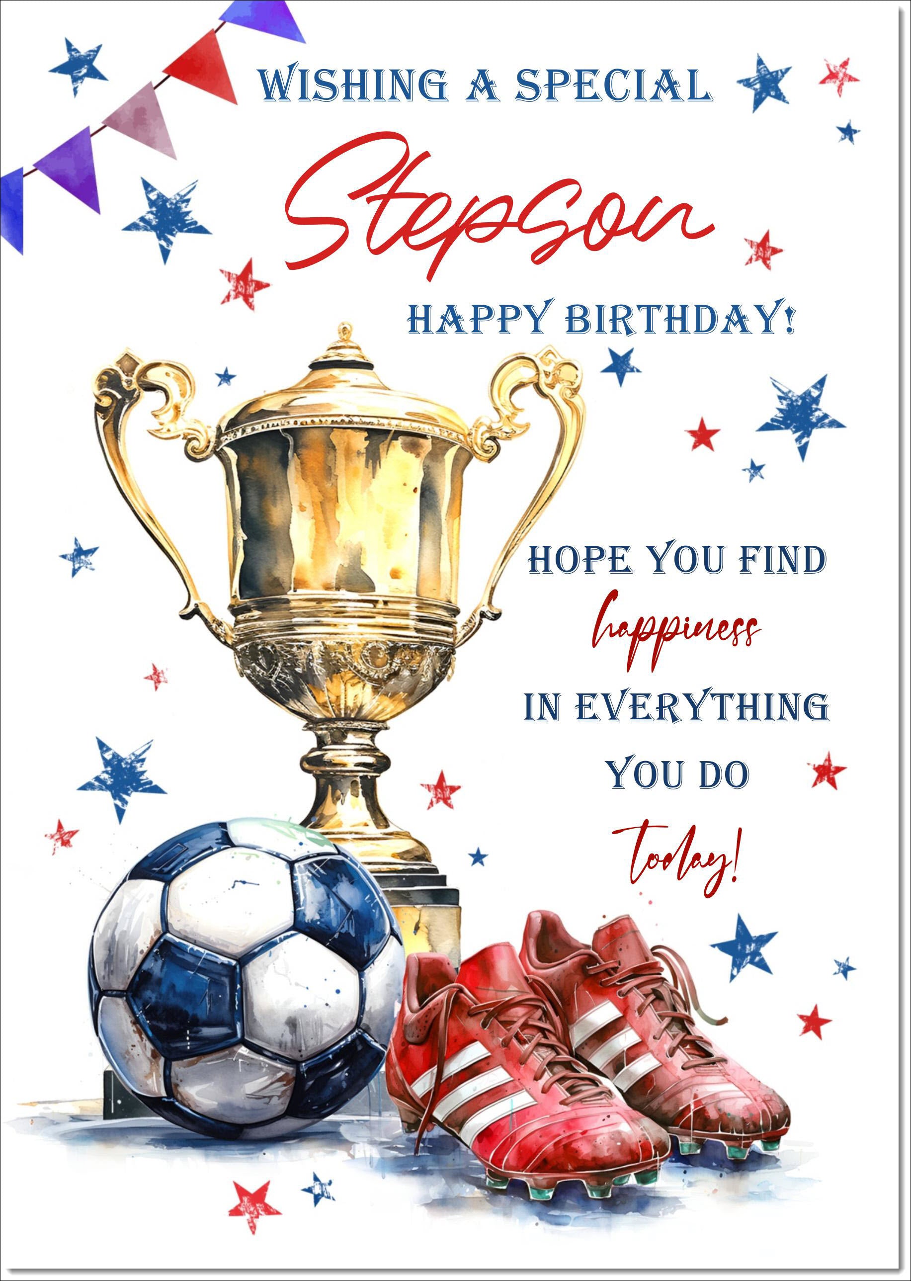 Stepson Birthday Card Footballer's Trophy
