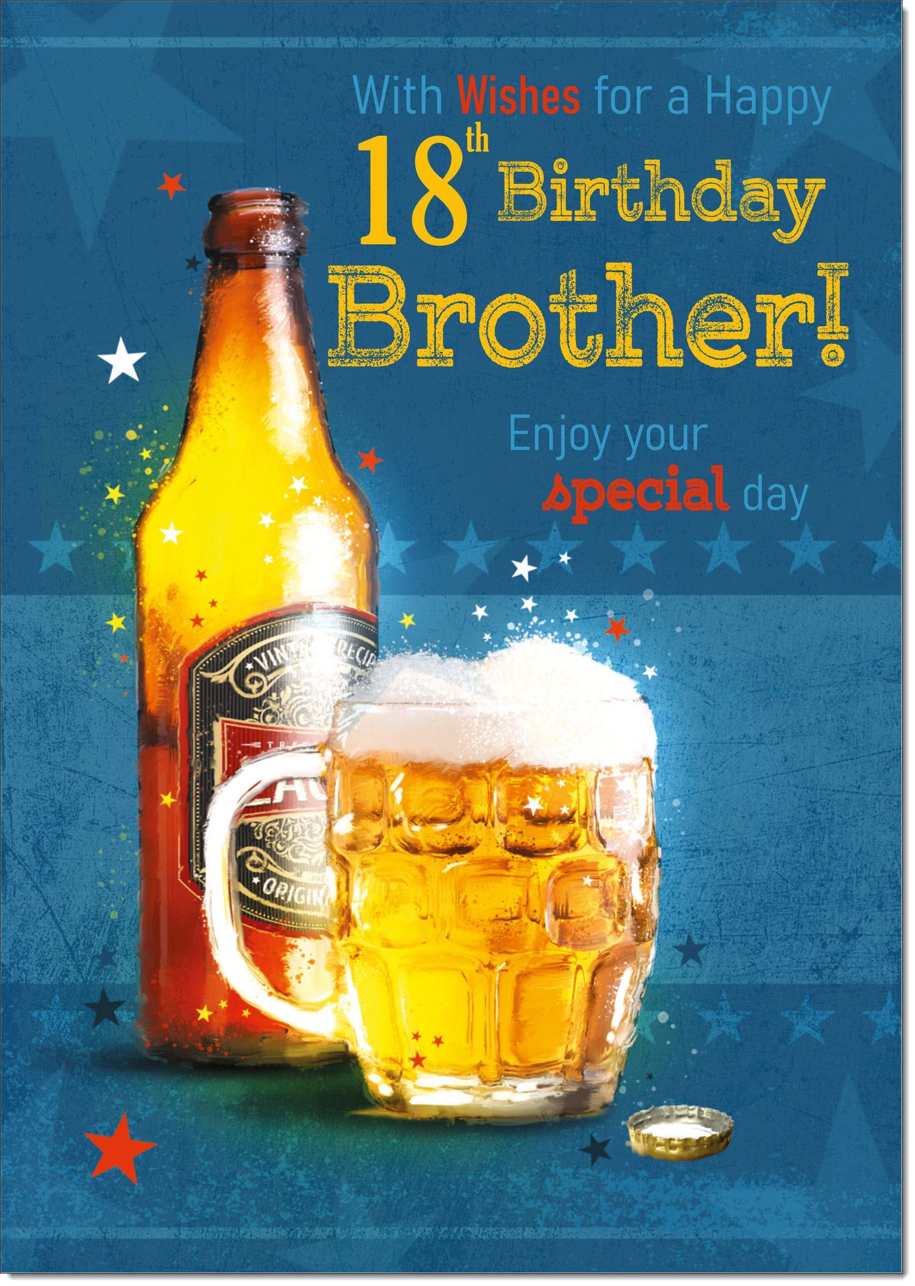Brother 18th Birthday Card Age 18 Beer Bottle