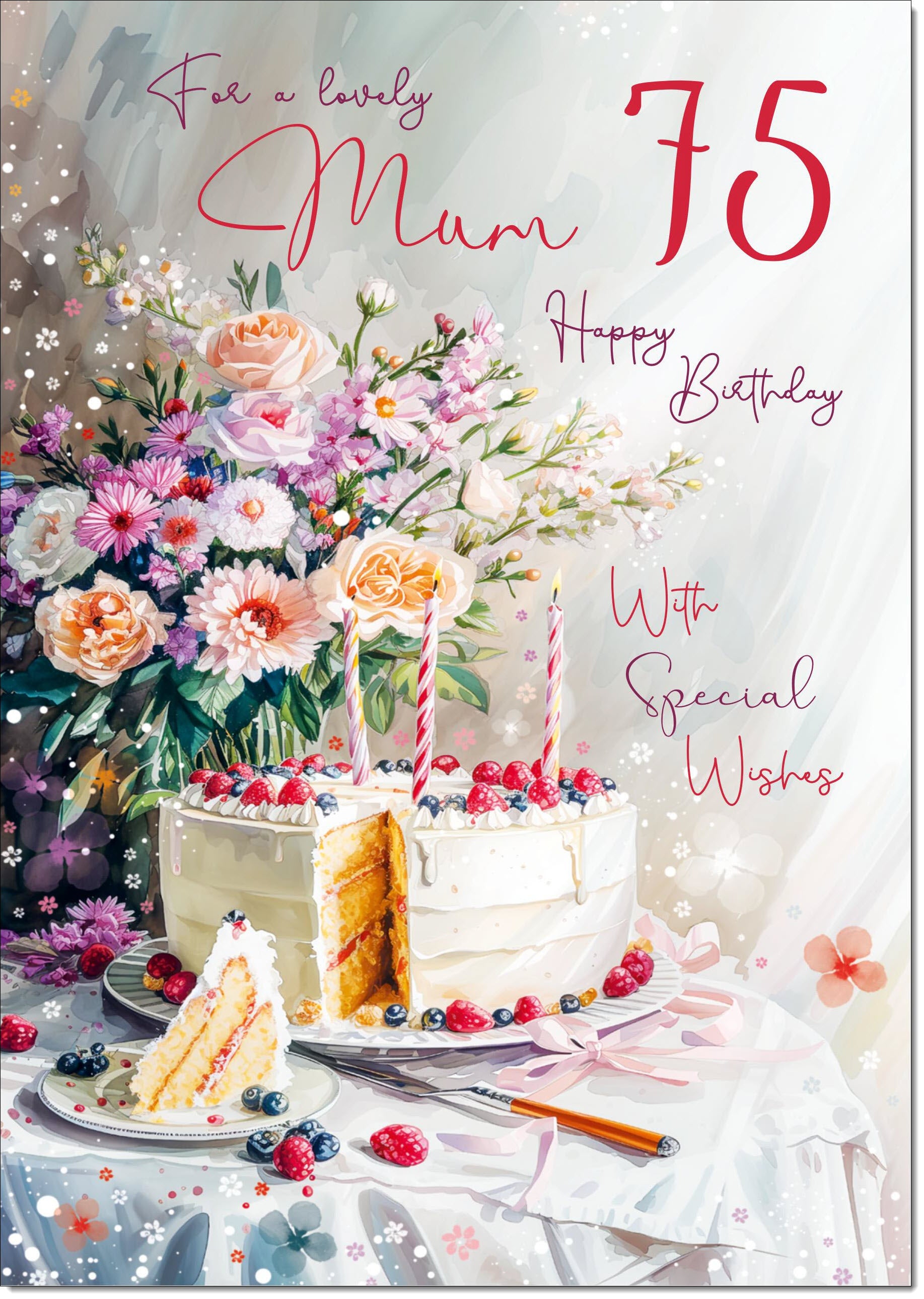 Mum 75th Birthday Card Age 75 Birthday Cake and Flowers