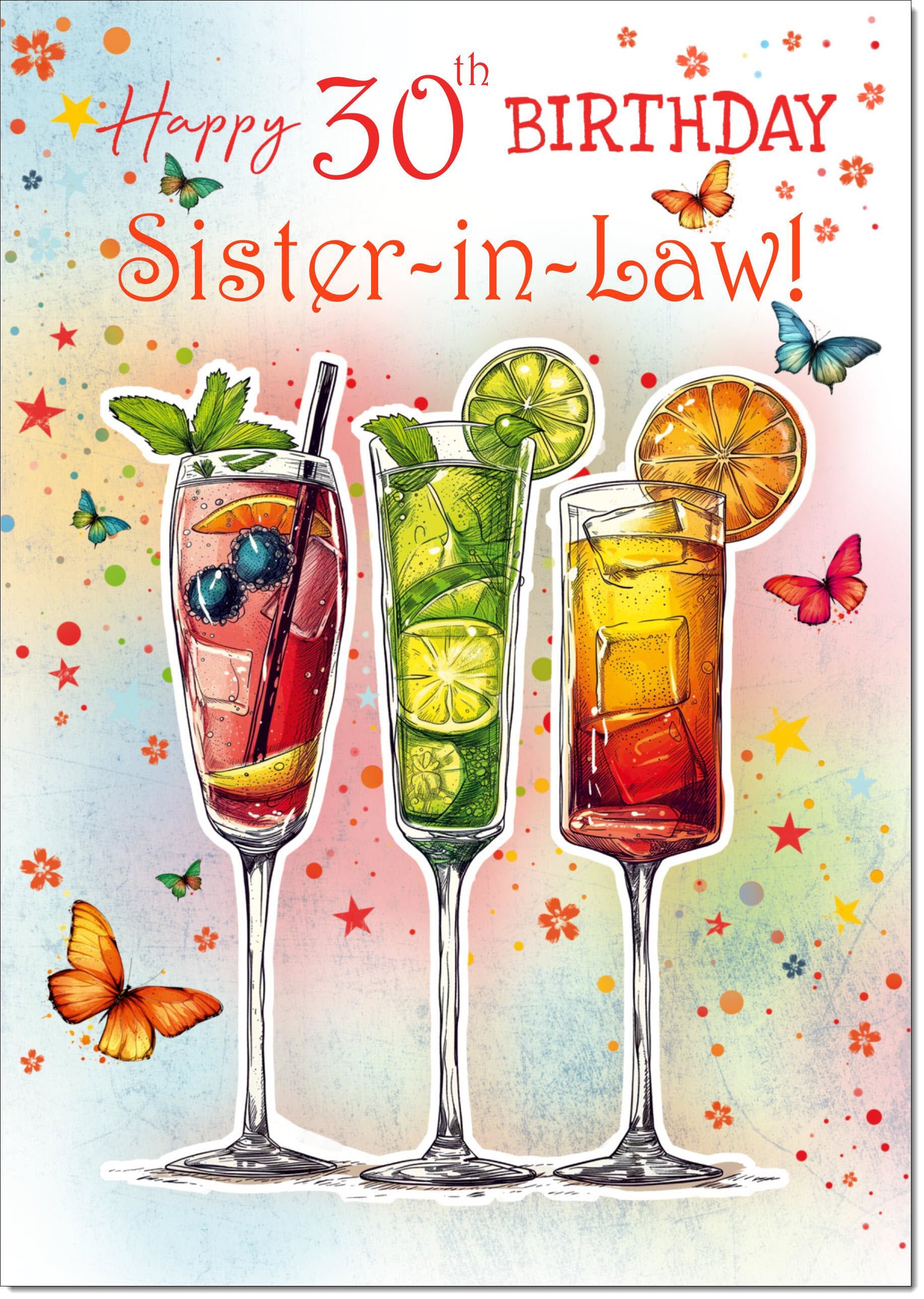 Sister-in-Law 30th Birthday Card Age 30 Cocktails and Butterflies