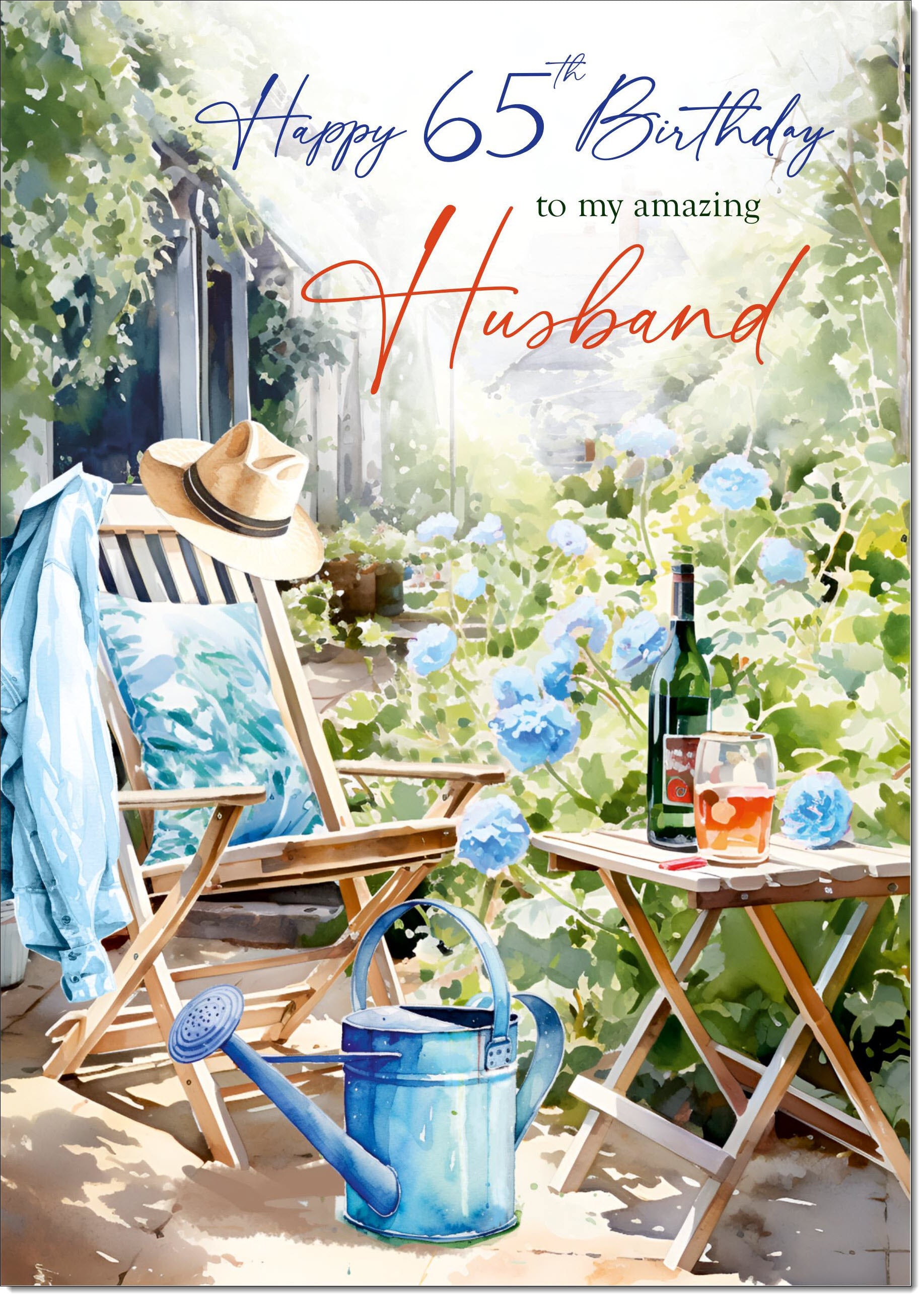 Husband 65th Birthday Card Age 65 Relax in the Garden
