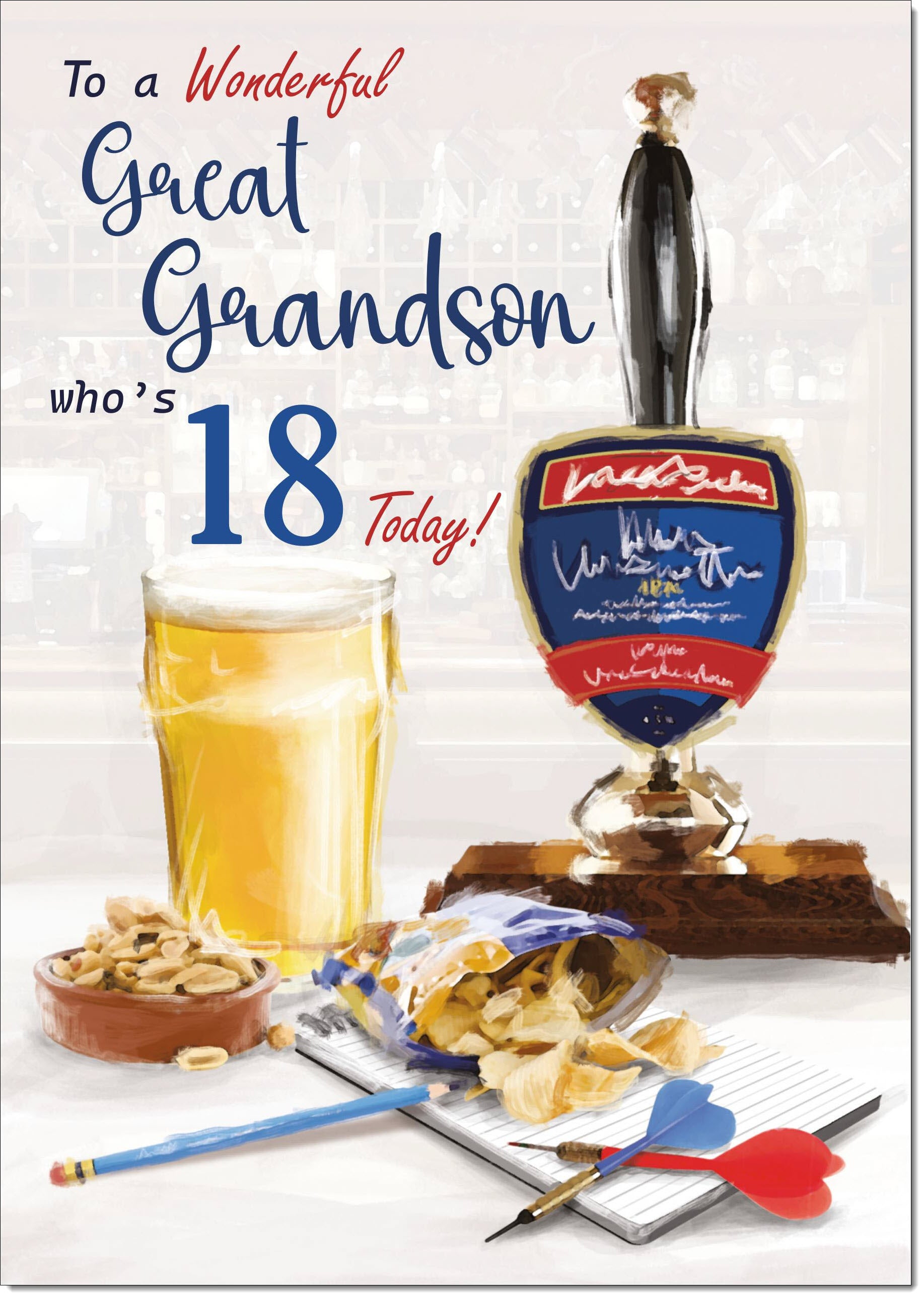 Great Grandson 18th Birthday Card Age 18 Draft Beer