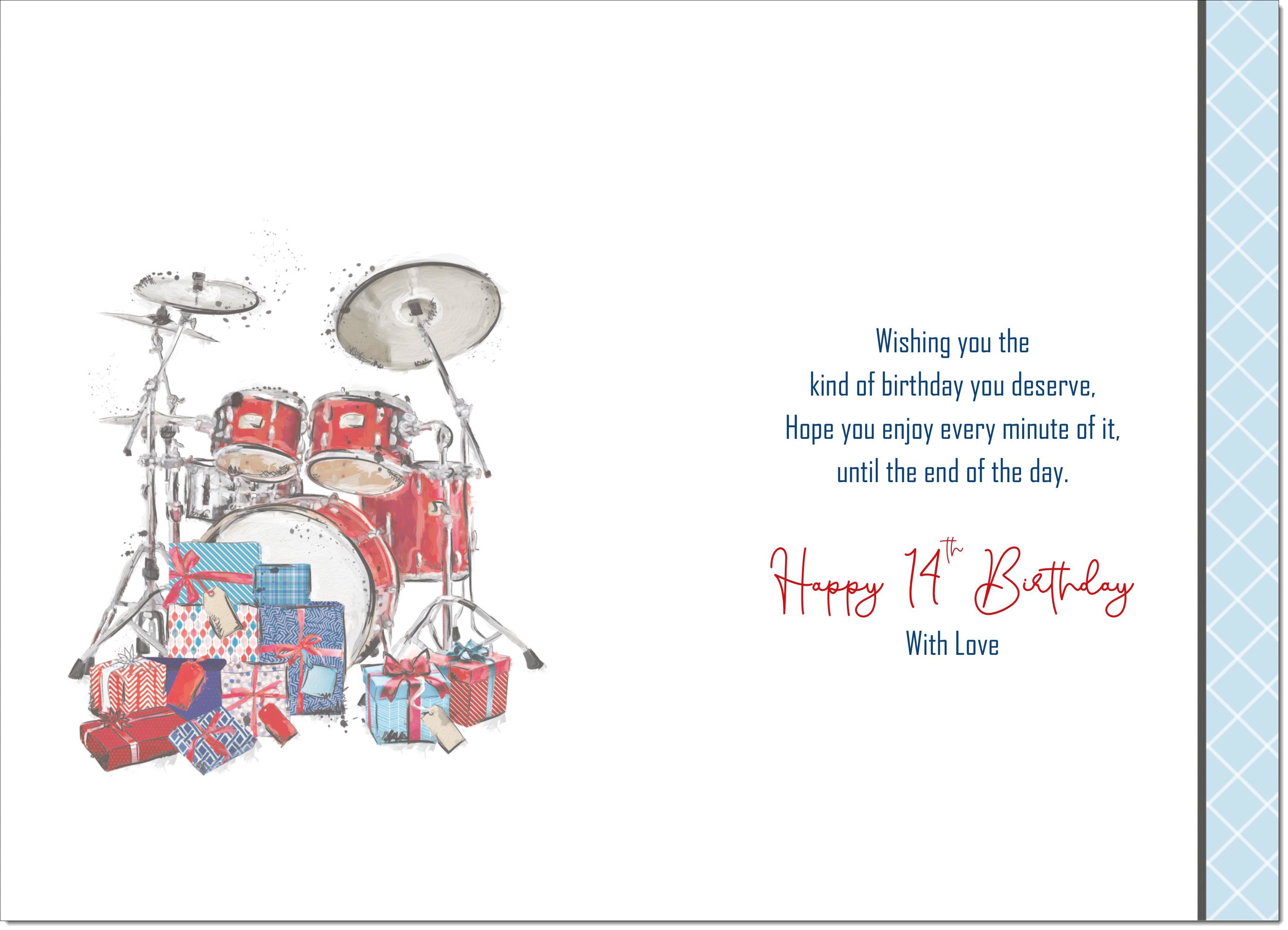 Grandson 14th Birthday Card Age 14 Drumkit
