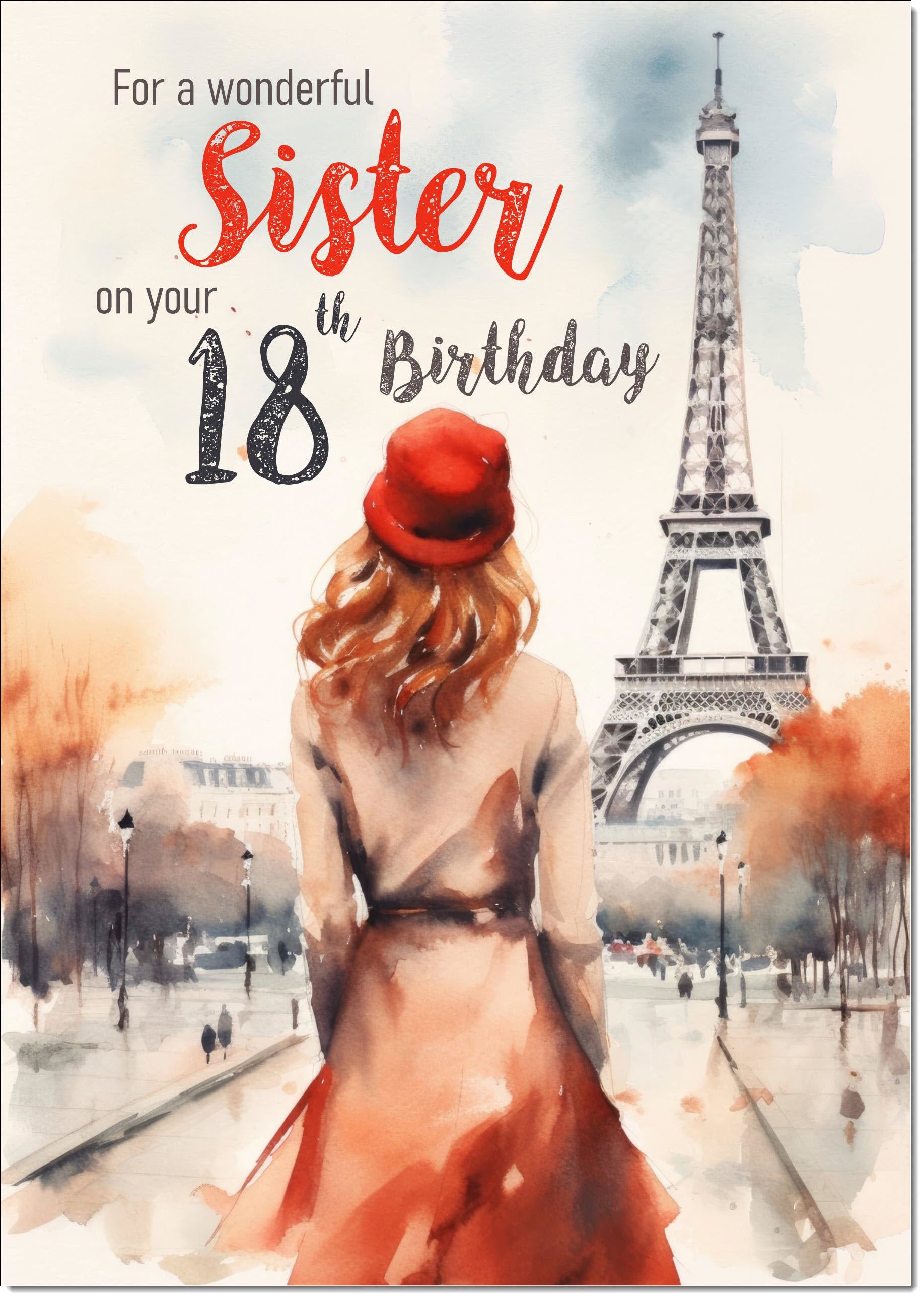 Sister 18th Birthday Card Age 18 Paris, Eiffel Tower