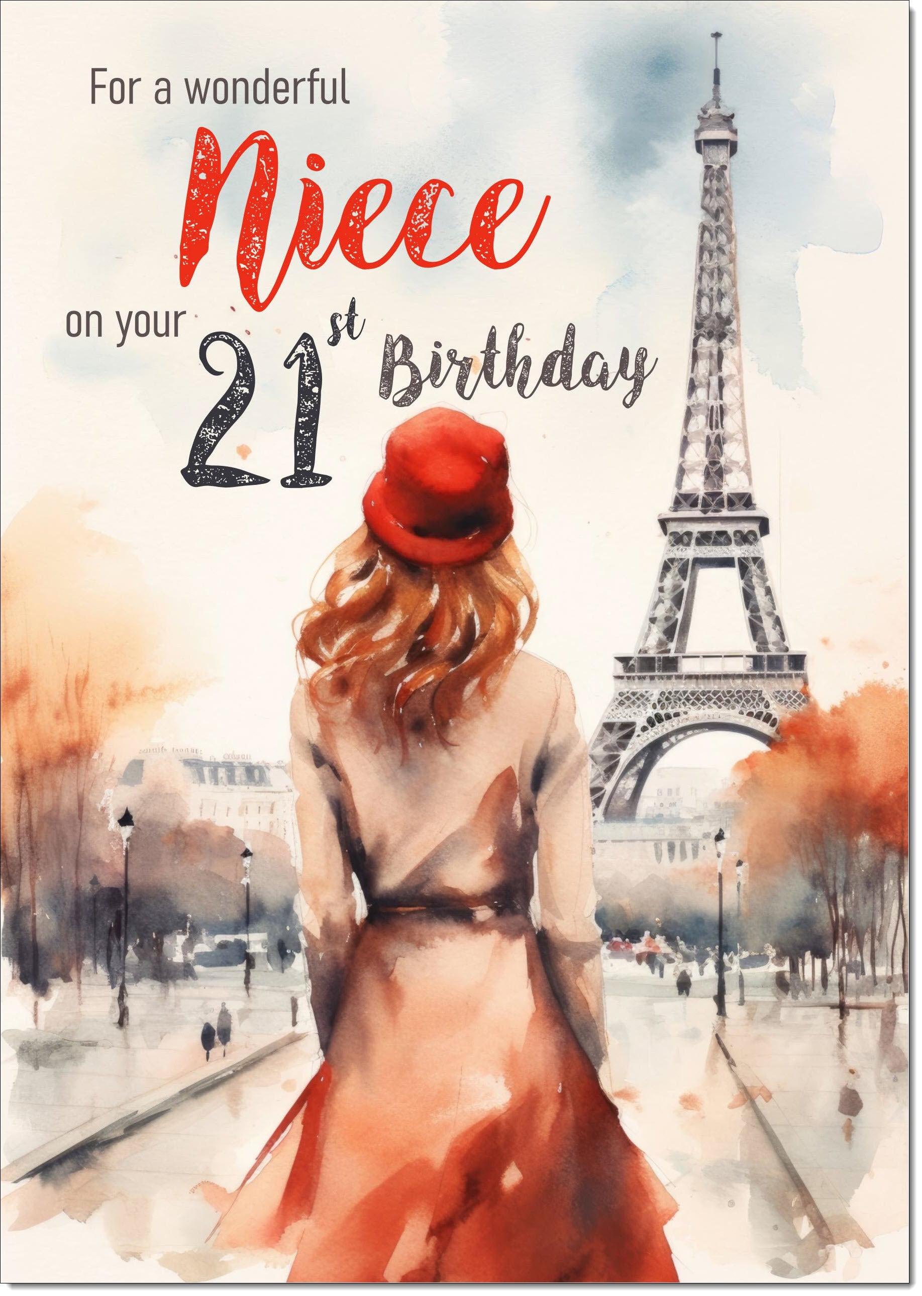 Niece 21st Birthday Card Age 21 Paris, Eiffel Tower