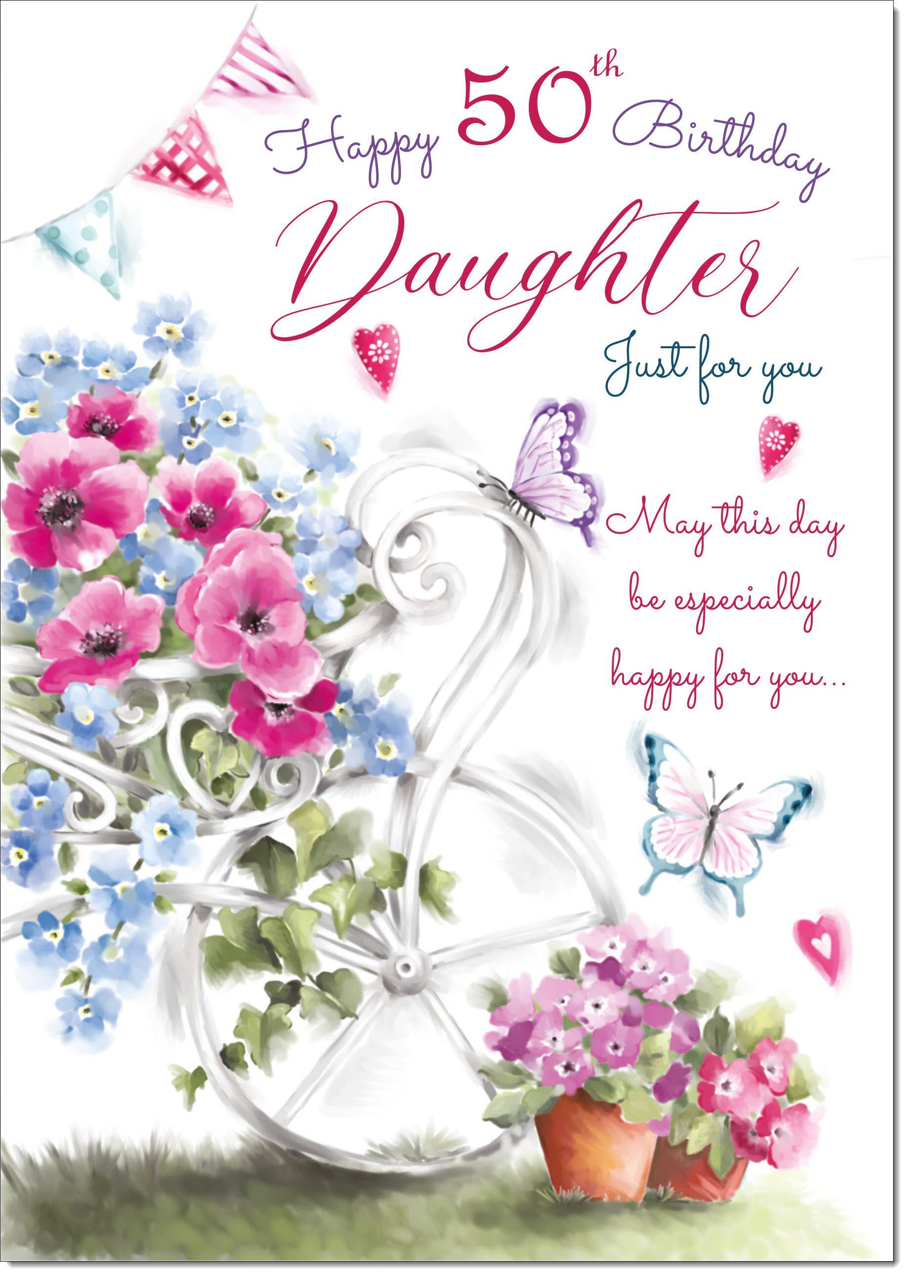 Daughter 50th Birthday Card Age 50 Garden Wheelbarrow Bouquet