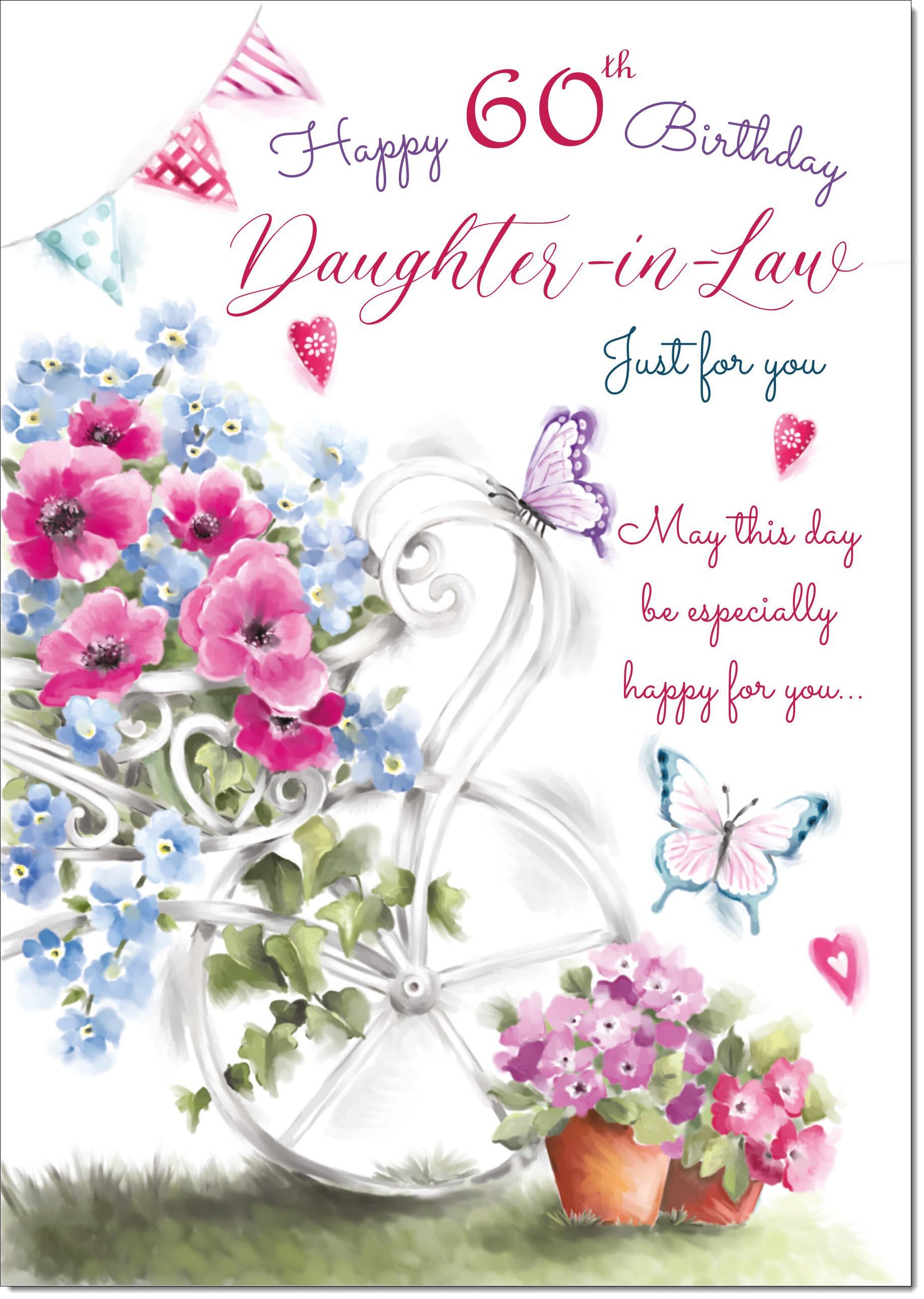 Daughter-in-Law 60th Birthday Card Age 60 Garden Wheelbarrow Bouquet