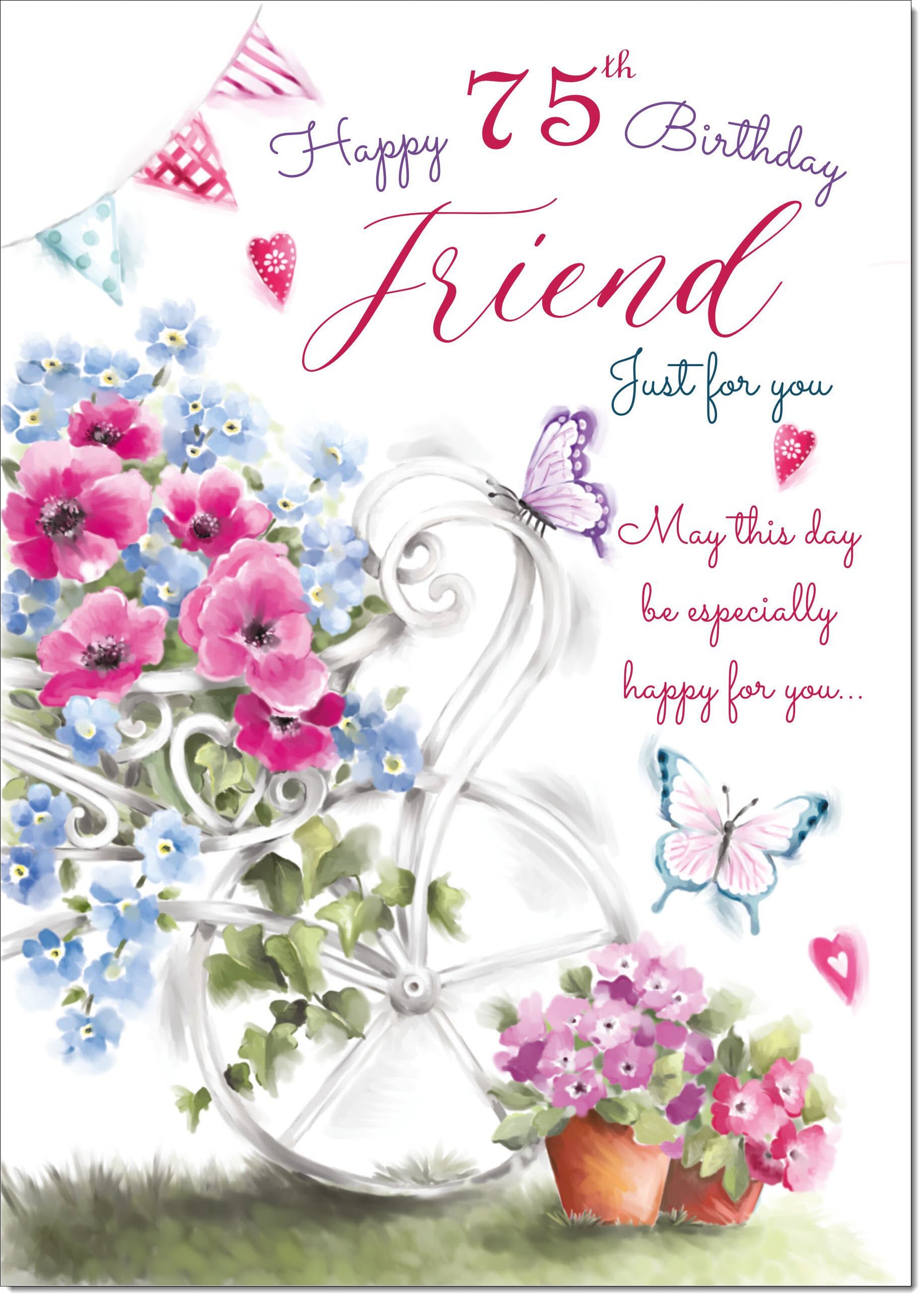 Friend 75th Birthday Card Age 75 Garden Wheelbarrow Bouquet