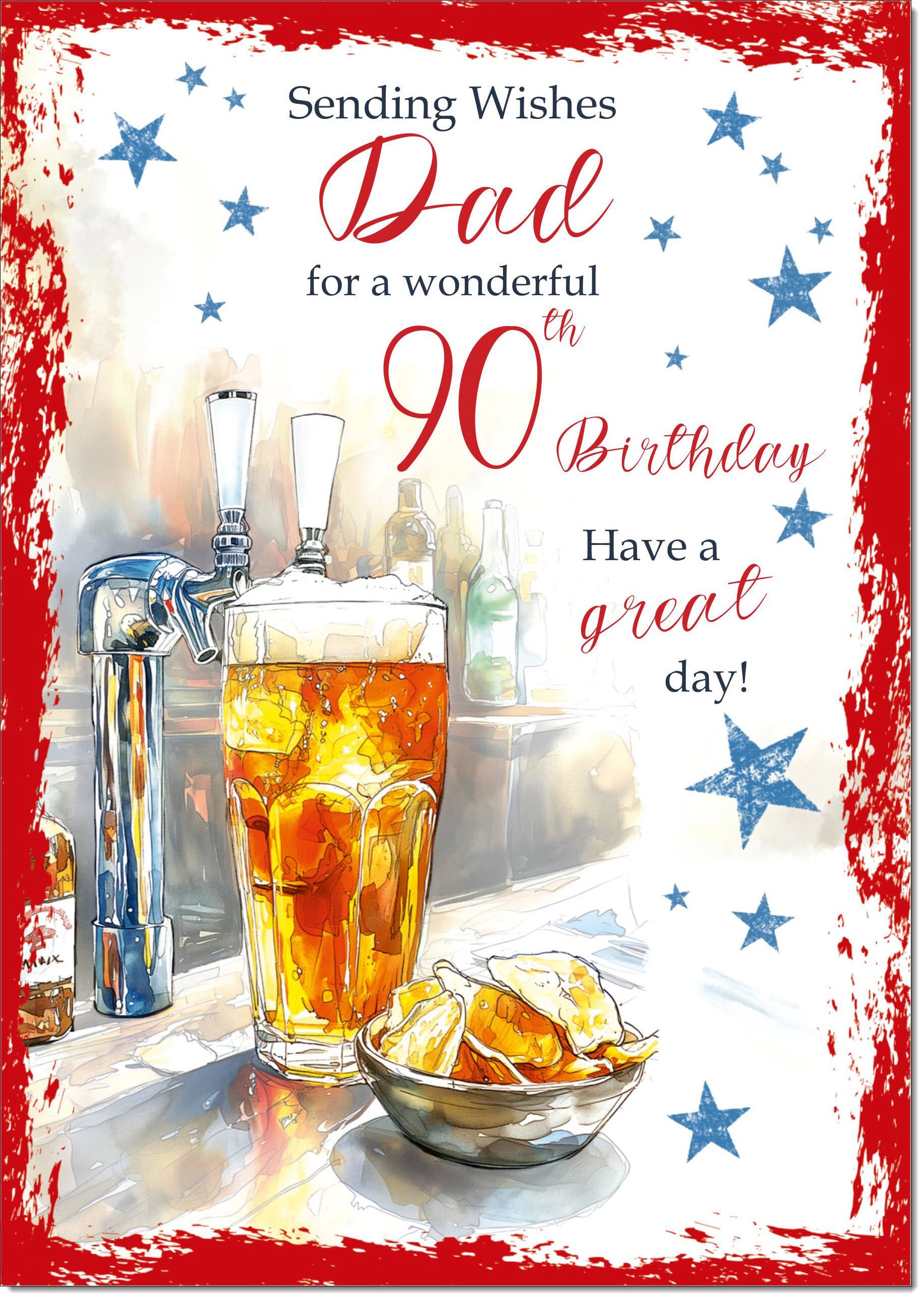 Dad 90th Birthday Card Age 90 Beer and Crisps