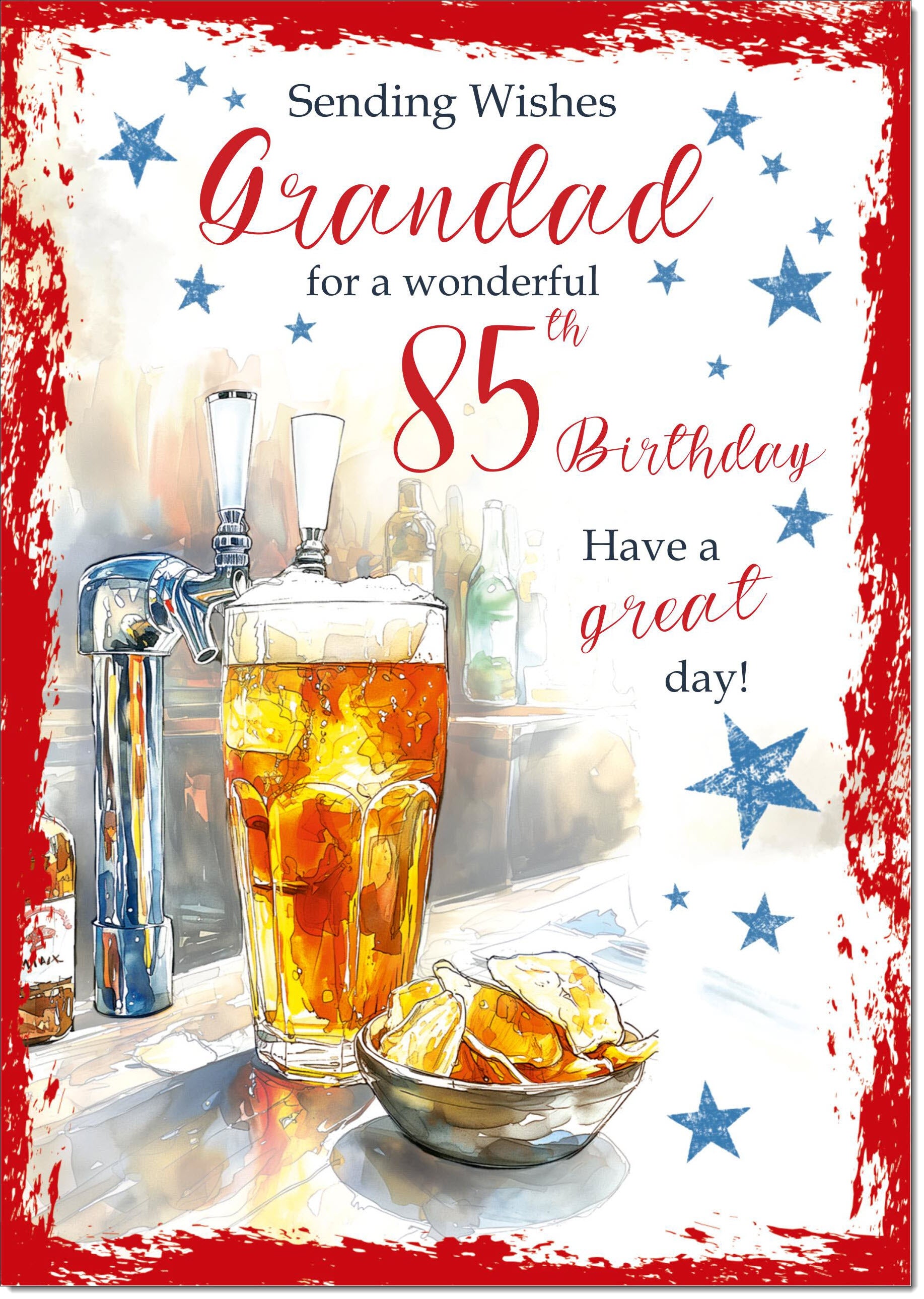 Grandad 85th Birthday Card Age 85 Beer and Crisps