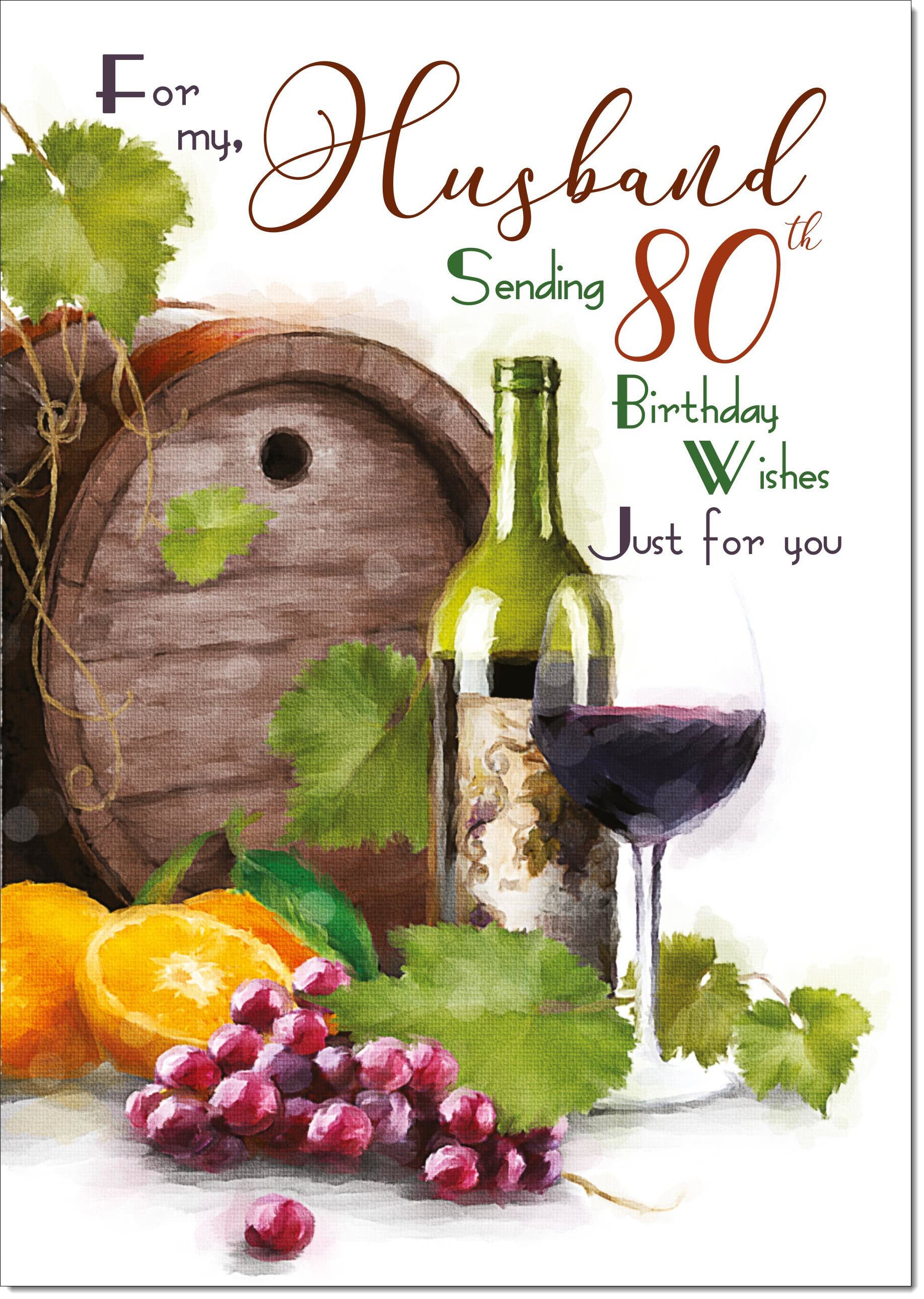Husband 80th Birthday Card Age 80 Wine Vineyard