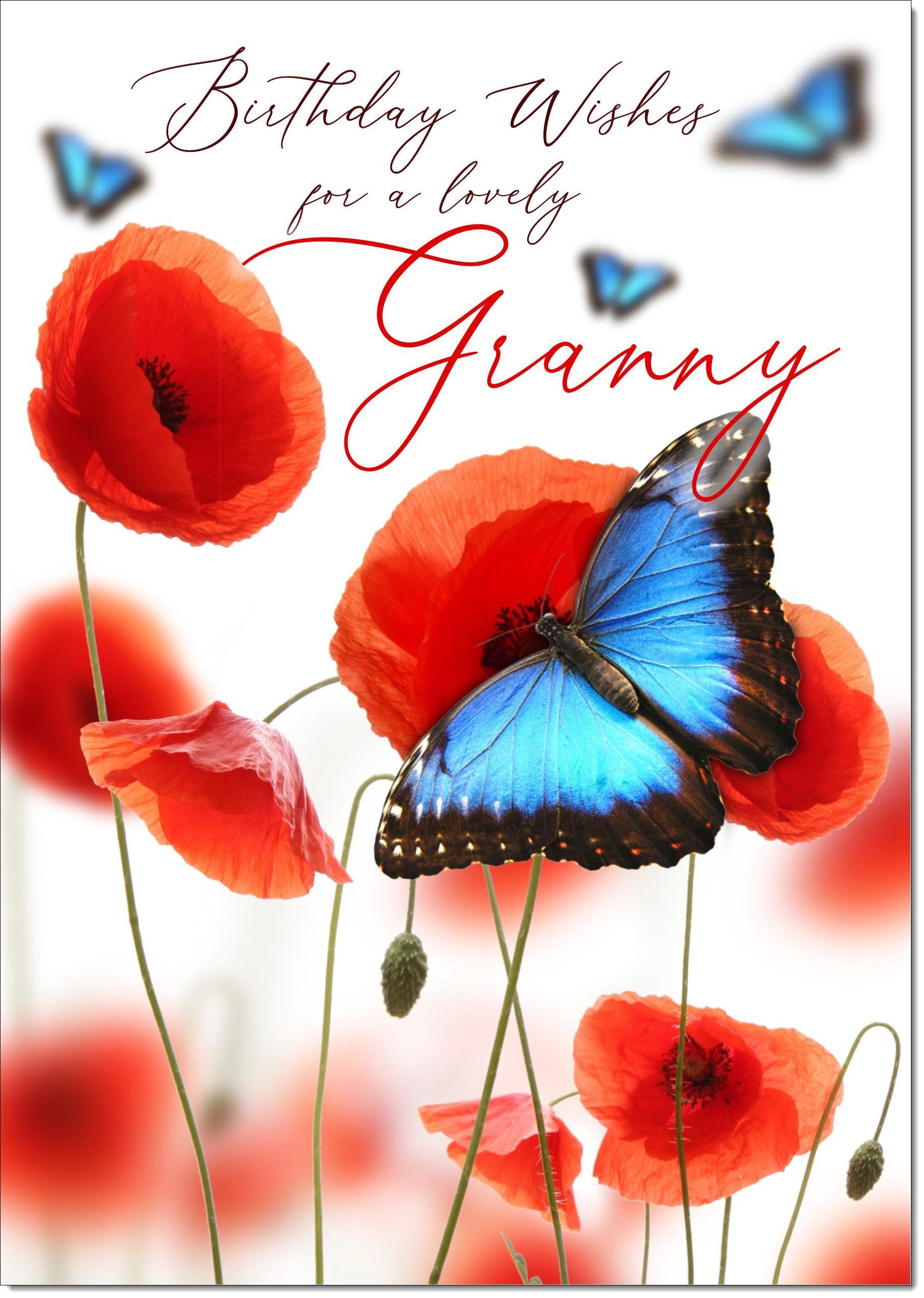 Granny Birthday Card Poppies and Blue Butterflies