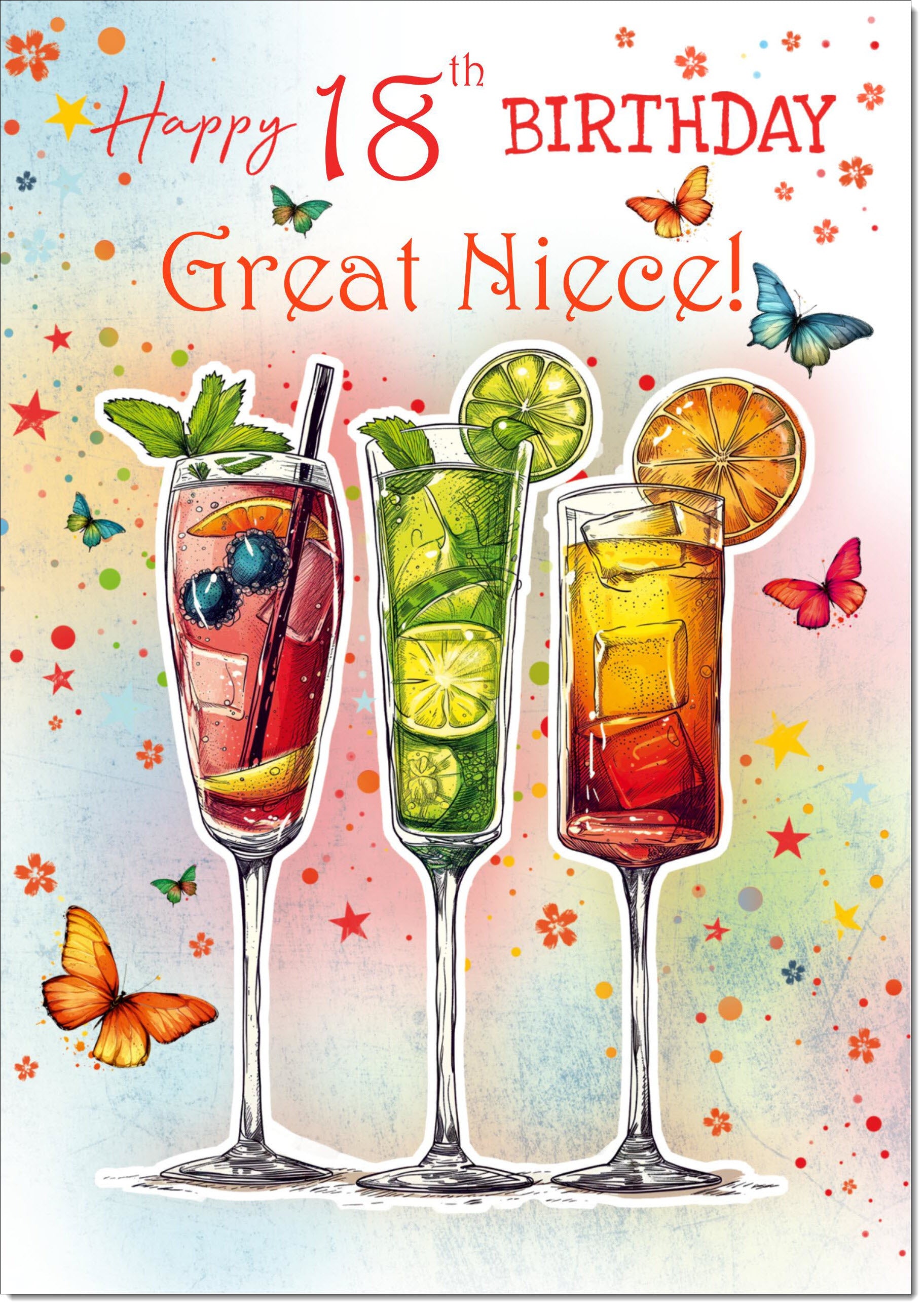 Great Niece 18th Birthday Card Age 18 Cocktails and Butterflies