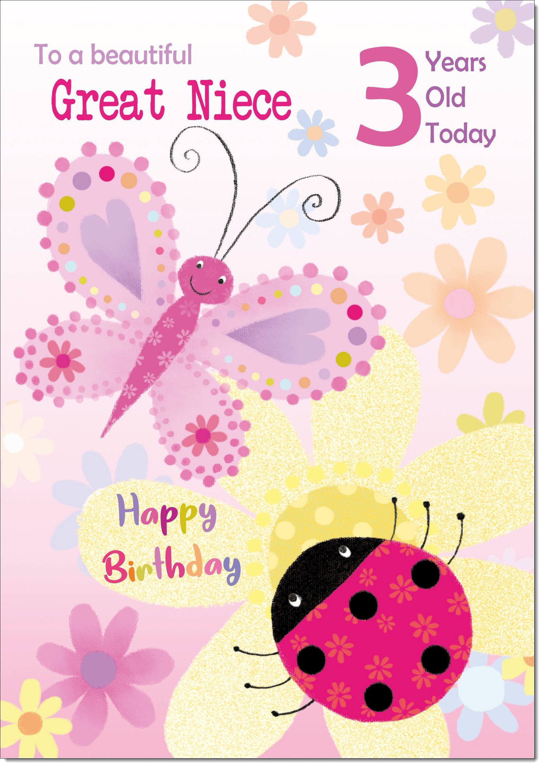 Great Niece 3rd Birthday Card Age 3 Ladybird and Butterfly
