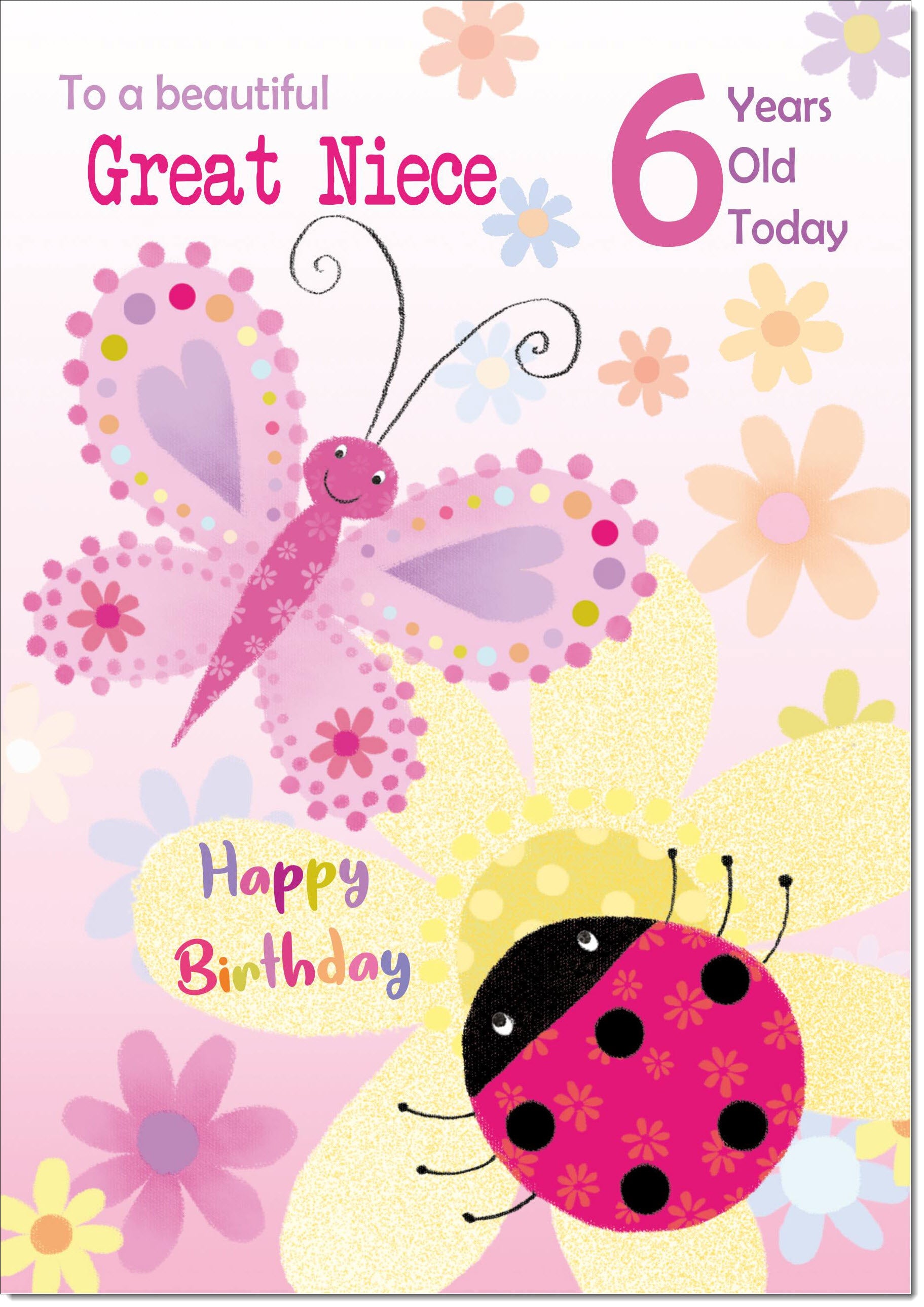 Great Niece 6th Birthday Card Age 6 Ladybird and Butterfly