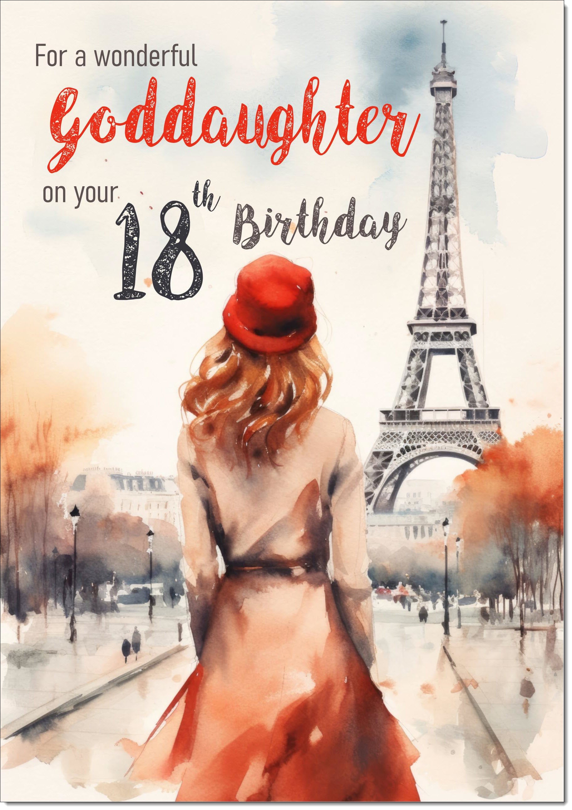 Goddaughter 18th Birthday Card Age 18 Paris, Eiffel Tower