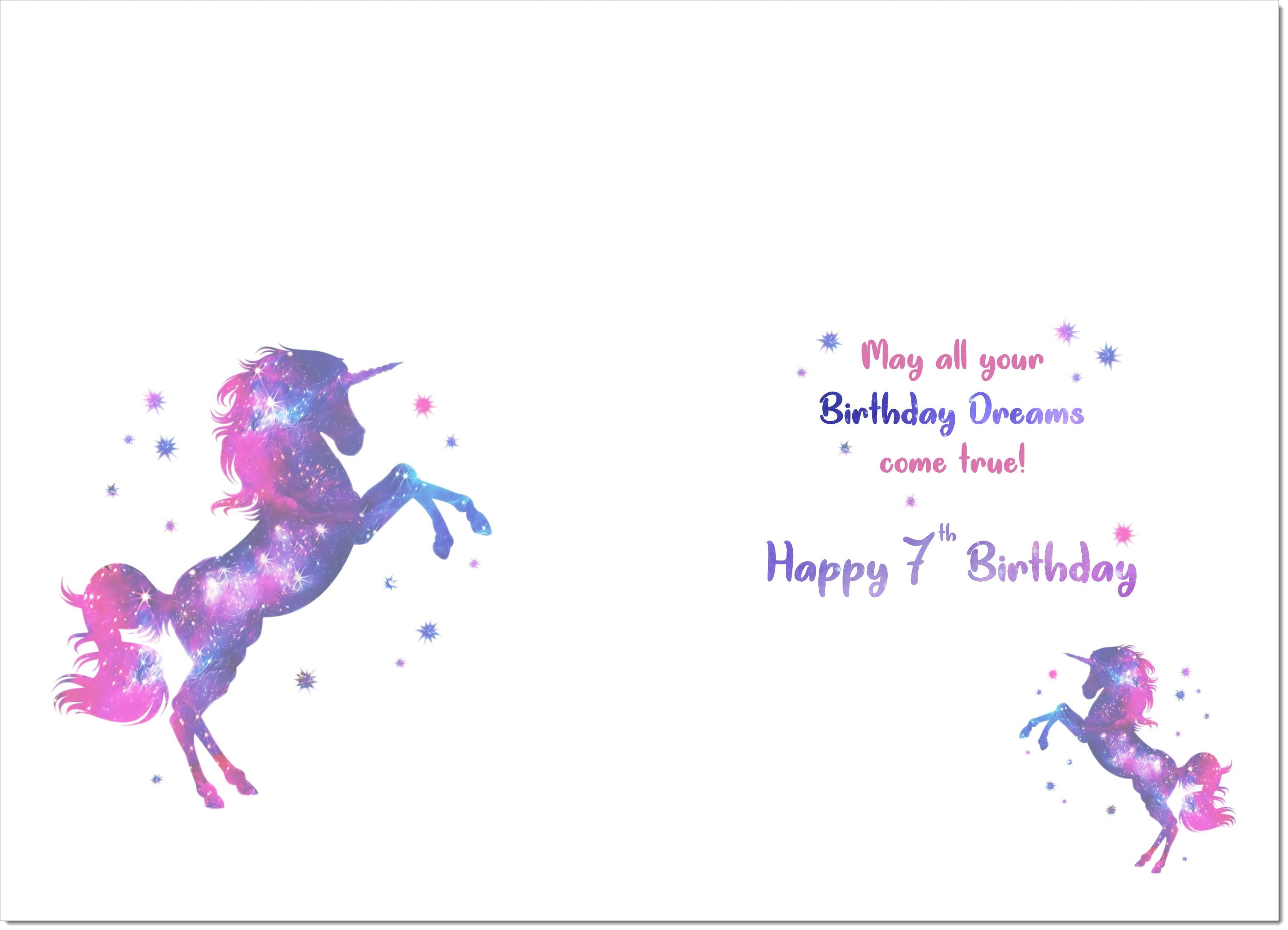 Great Niece 7th Birthday Card Age 7 Stardust Unicorn