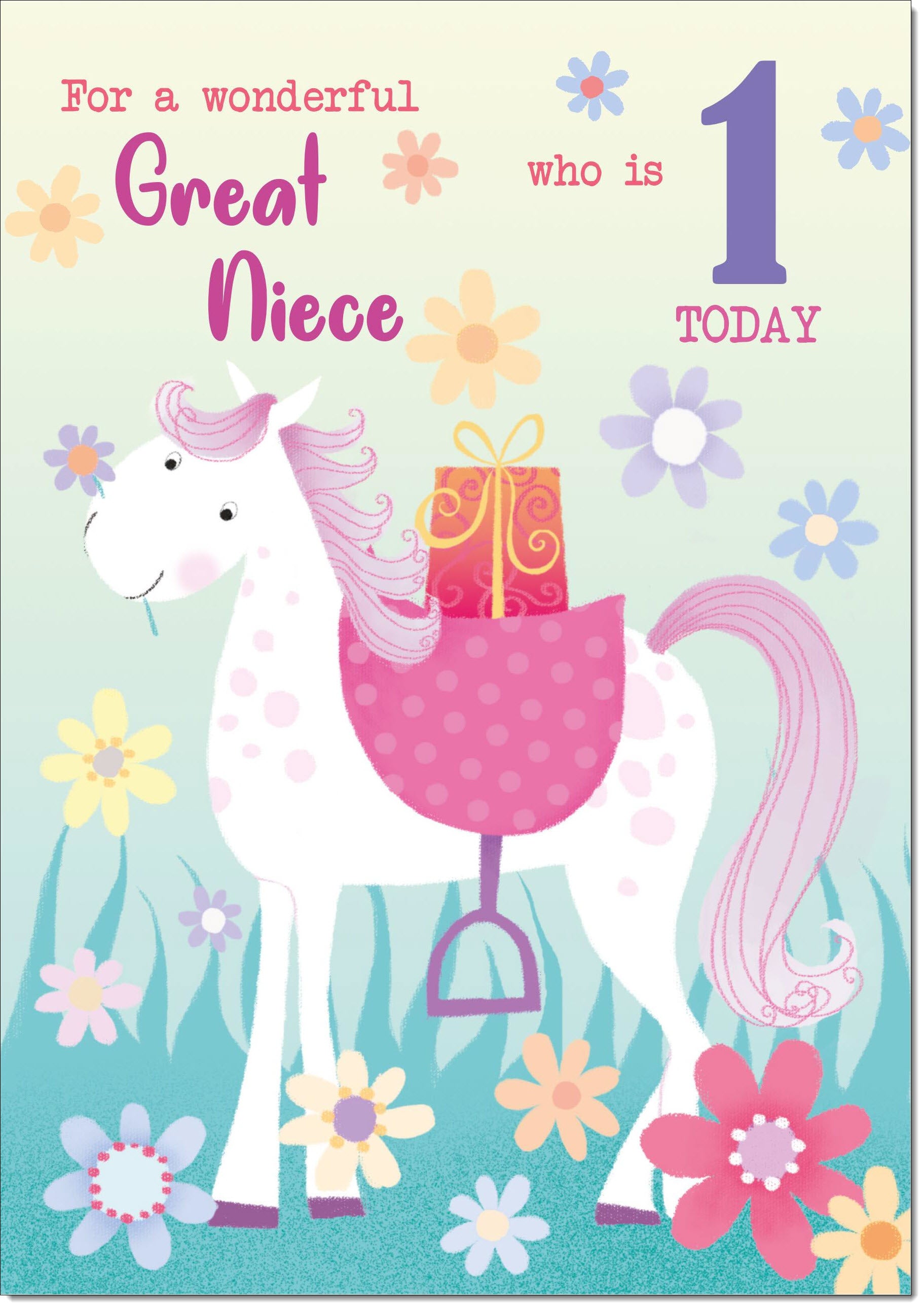 Great Niece 1st Birthday Card Age 1 Colouring Unicorn Horse