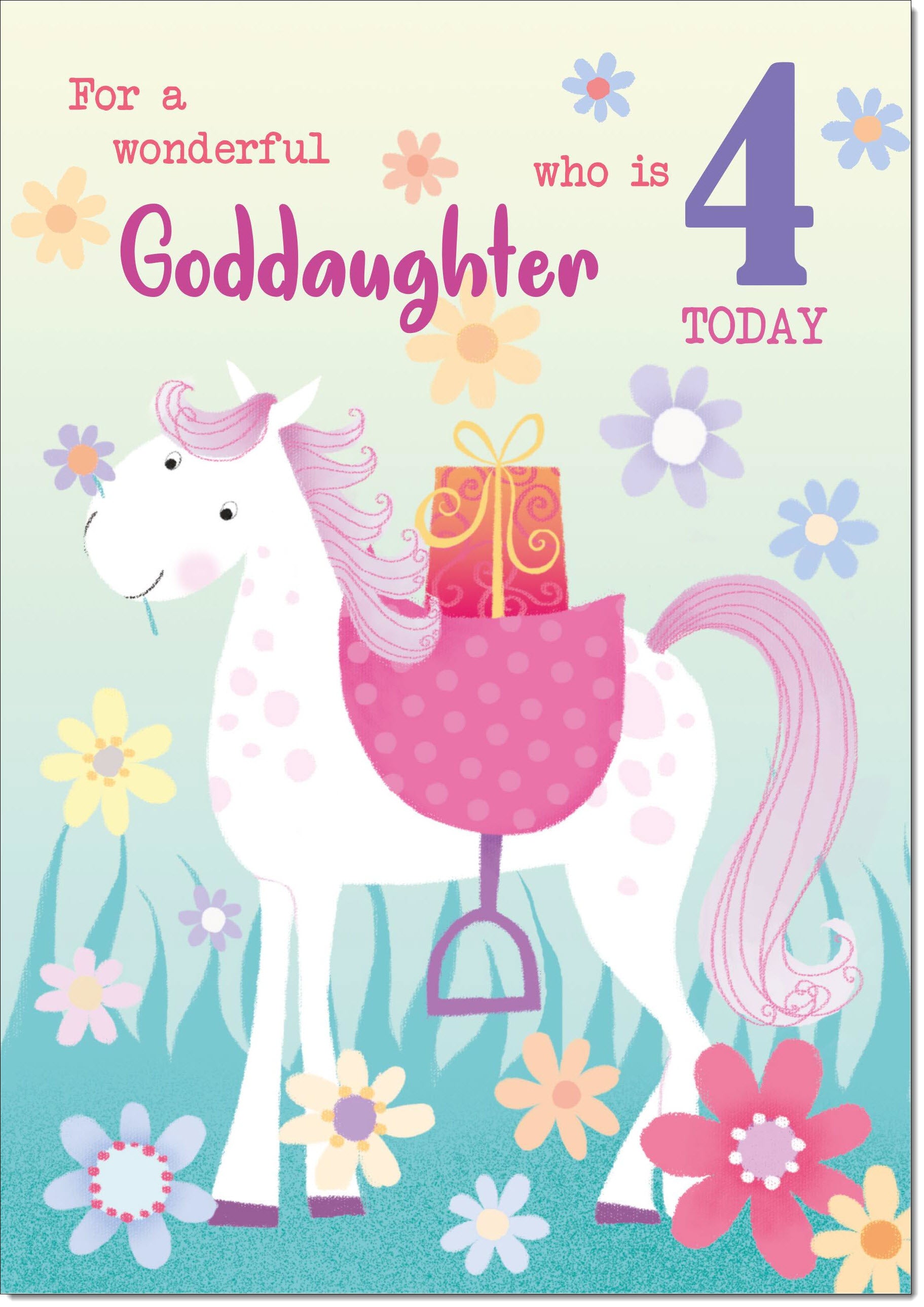 Goddaughter 4th Birthday Card Age 4 Colouring Unicorn Horse