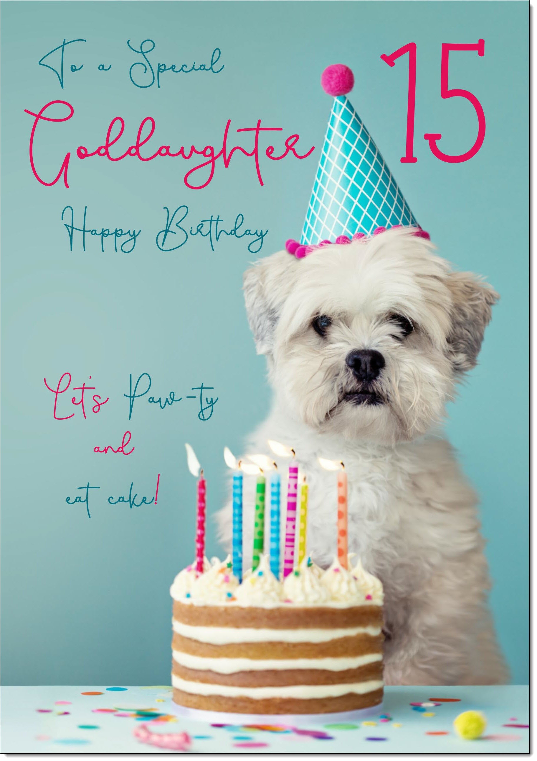 Goddaughter 15th Birthday Card Age 15 Birthday Dog