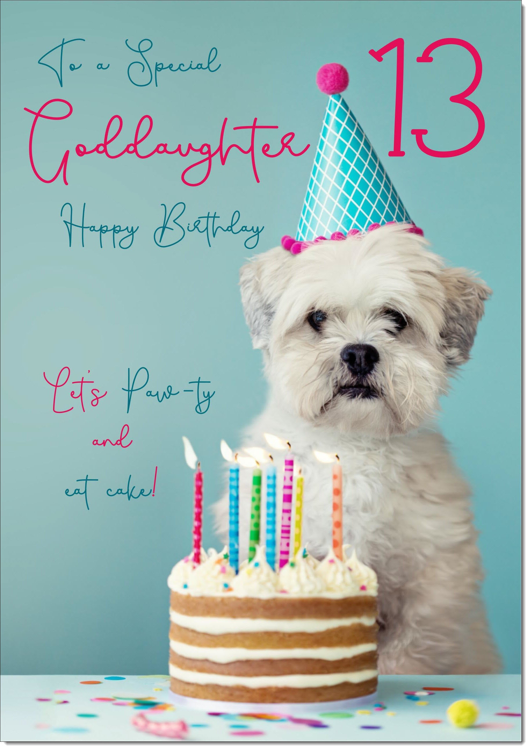 Goddaughter 13th Birthday Card Age 13 Birthday Dog