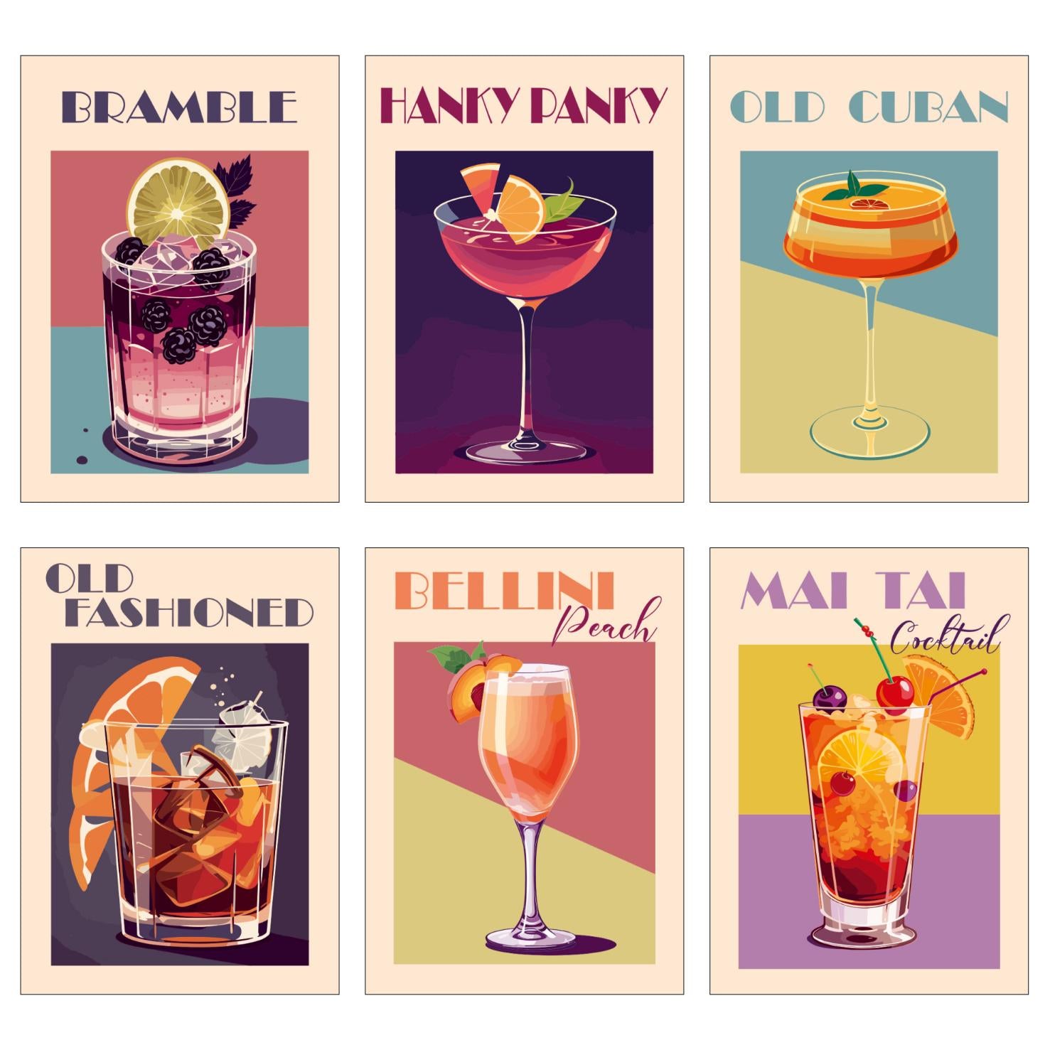 Retro Cocktails Set 2 out of 3 Matching Sets Unframed Quality Prints A4 or A3 Size (A4 210 x 297mm, A3 297 x 420mm)(A4 8.3 x 11.7", A3 11.7 x 16.5") Printed in the UK on 100% Recyclable Thick 350gsm Luxury Matt Board Supplied UNFRAMED but look great as they are. Delivered flat - not rolled. Ready to Frame - Easy to Purchase A4 or A3 Frames online. No cutting required.