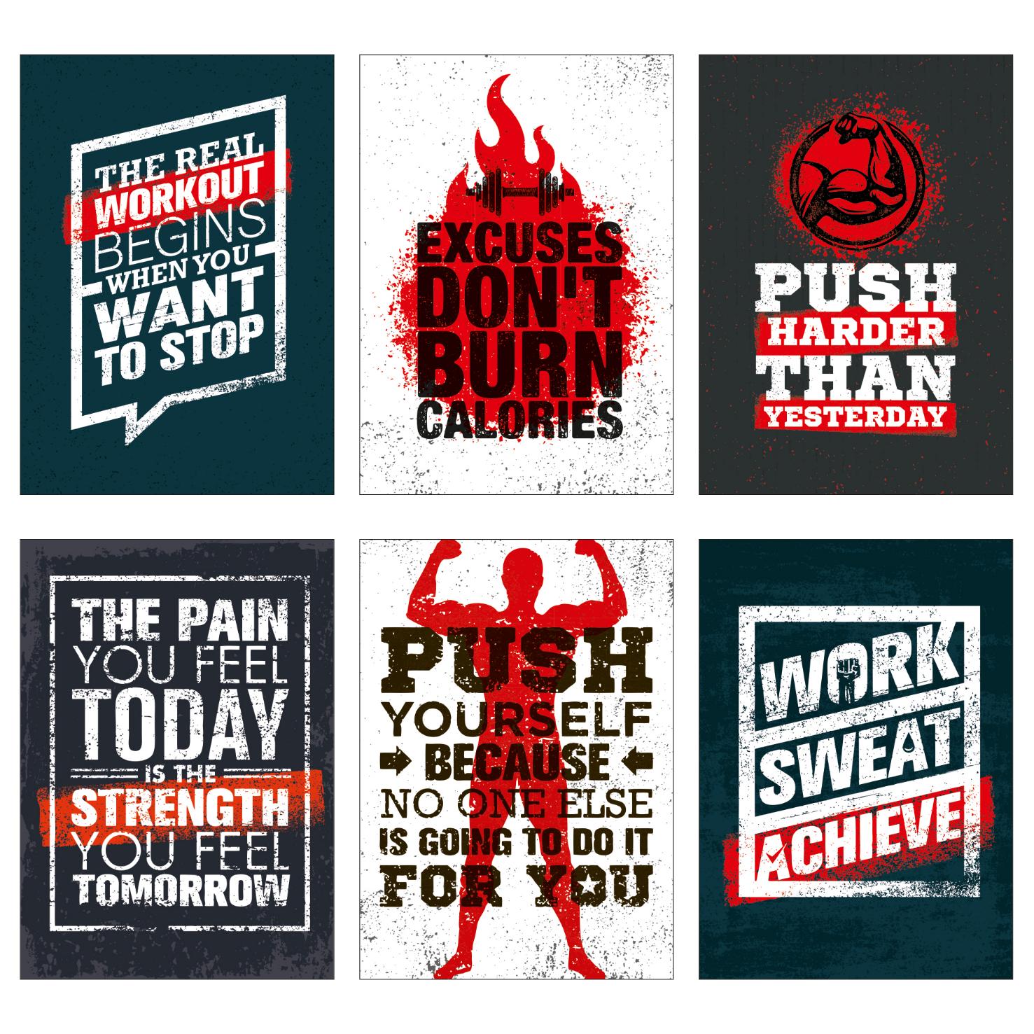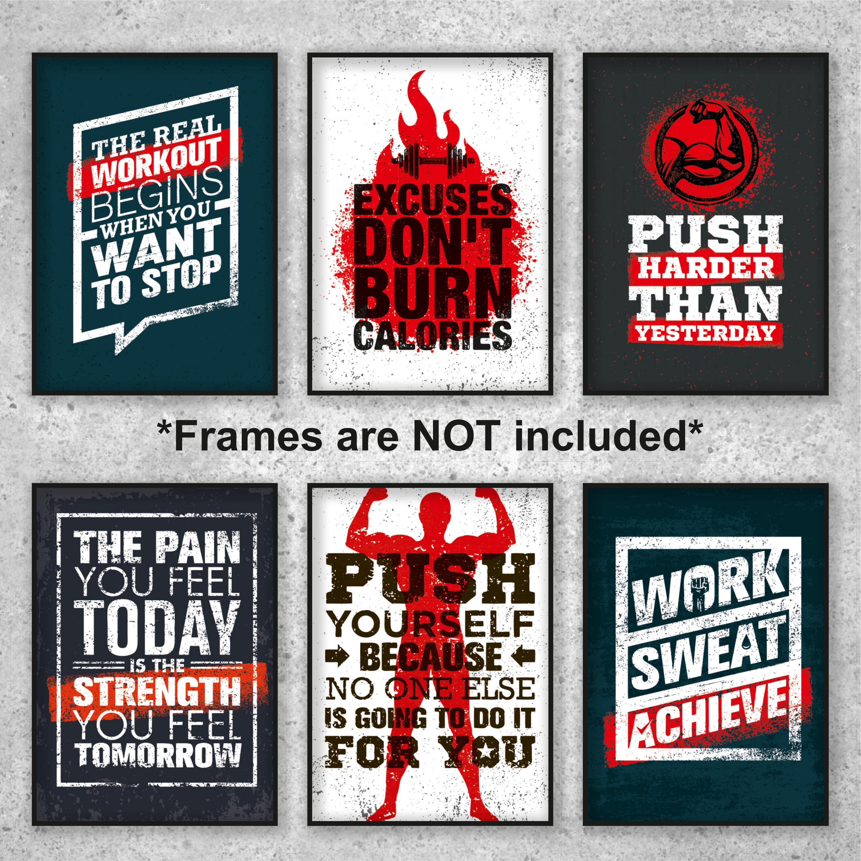 Set of 6 x A4 Size Motivational Quotes Gym Black and Red Unframed Quality Prints A4 or A3 Size (A4 210 x 297mm, A3 297 x 420mm)(A4 8.3 x 11.7", A3 11.7 x 16.5") Printed in the UK on 100% Recyclable Thick 350gsm Luxury Matt Board Supplied UNFRAMED but look great as they are. Delivered flat - not rolled. Ready to Frame - Easy to Purchase A4 or A3 Frames online. No cutting required.