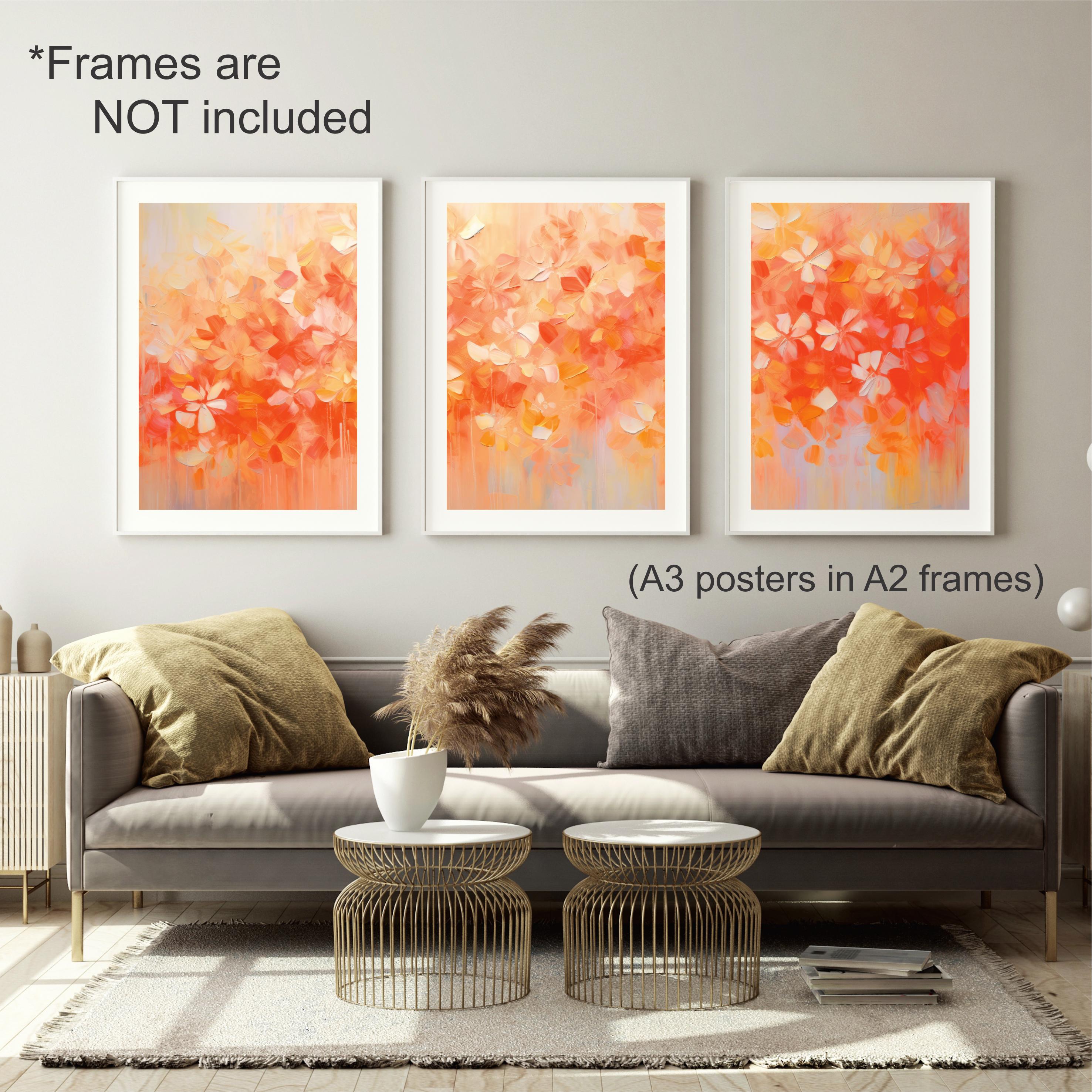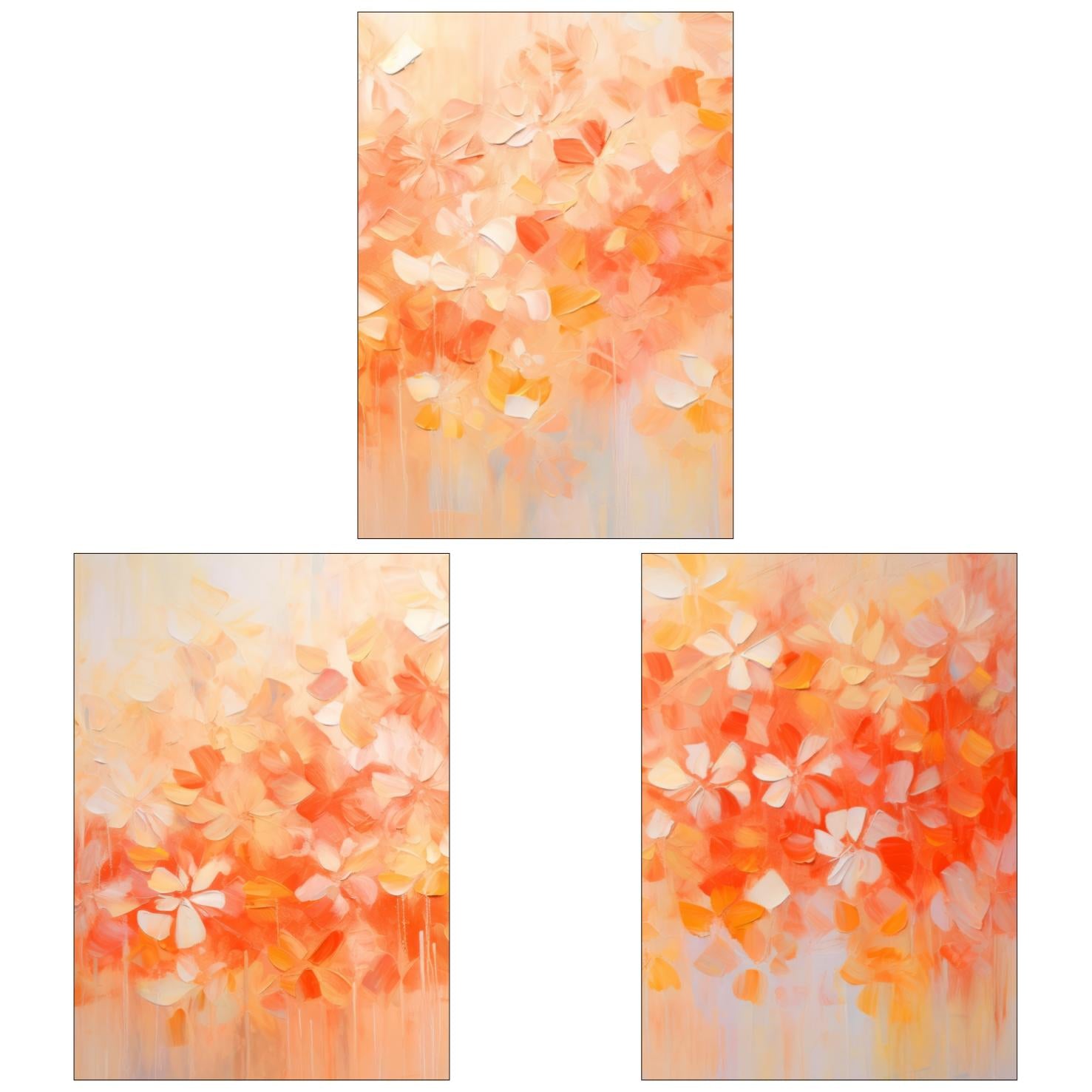 Set of 3 x A4 Size Abstract Art Orange Flowers Oil Painting Unframed Quality Prints A4 or A3 Size (A4 210 x 297mm, A3 297 x 420mm)(A4 8.3 x 11.7", A3 11.7 x 16.5") Printed in the UK on 100% Recyclable Thick 350gsm Luxury Matt Board Supplied UNFRAMED but look great as they are. Delivered flat - not rolled. Ready to Frame - Easy to Purchase A4 or A3 Frames online. No cutting required.
