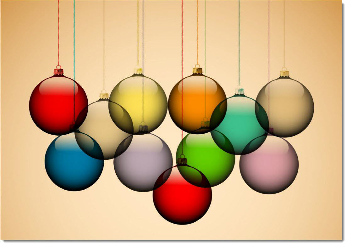 Pack of 10 Charity Christmas Cards Abstract Christmas Baubles