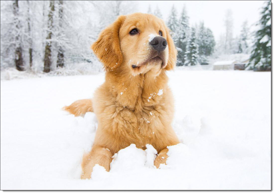 Pack of 10 Charity Christmas Cards Gold Retriever in the Snow