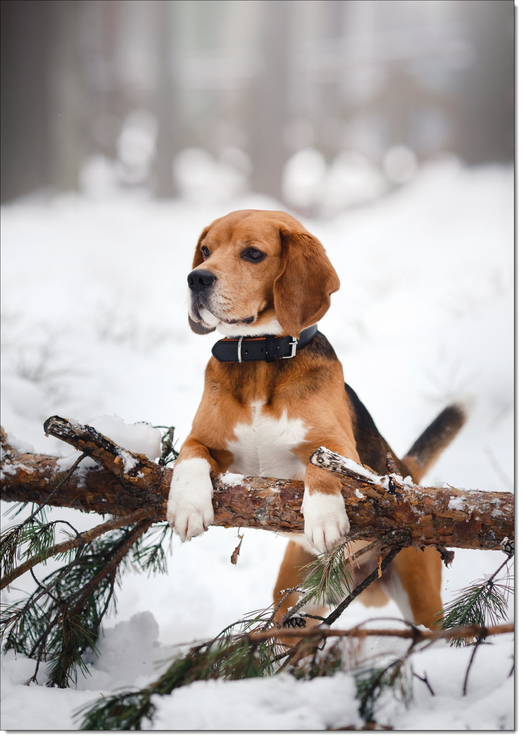 Pack of 10 Christmas Cards Beagle Dog in the Snow