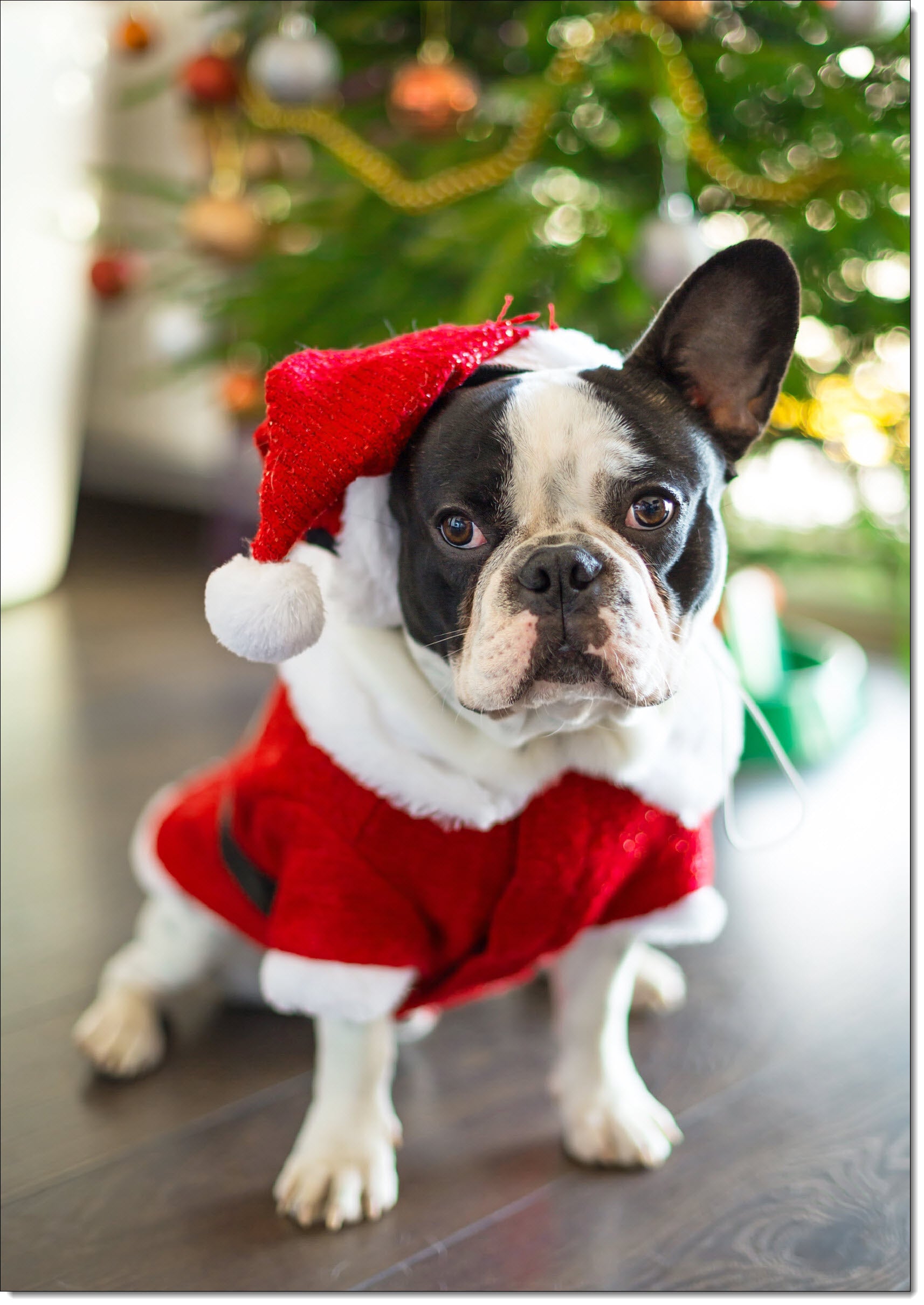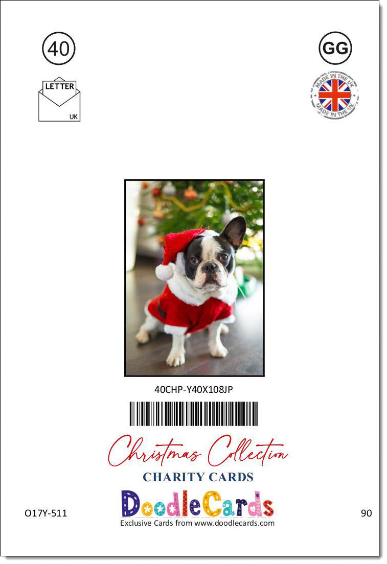 Pack of 10 Charity Christmas Cards French Bulldog in Santas Hat