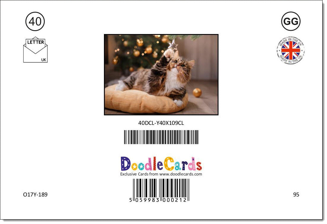 Pack of 10 Christmas Cards Tortoiseshell Cat playing with Bauble