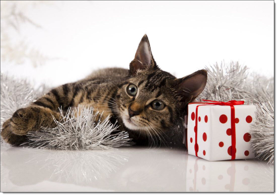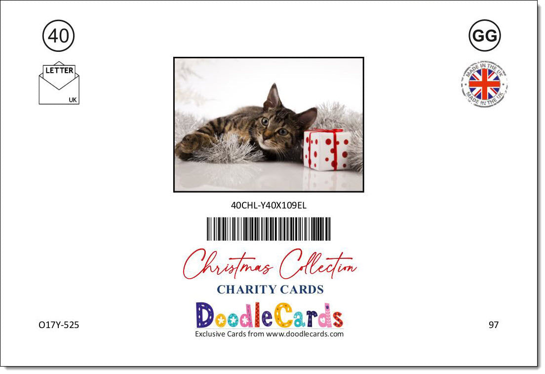 Pack of 10 Charity Christmas Cards Tabby Cat and Present