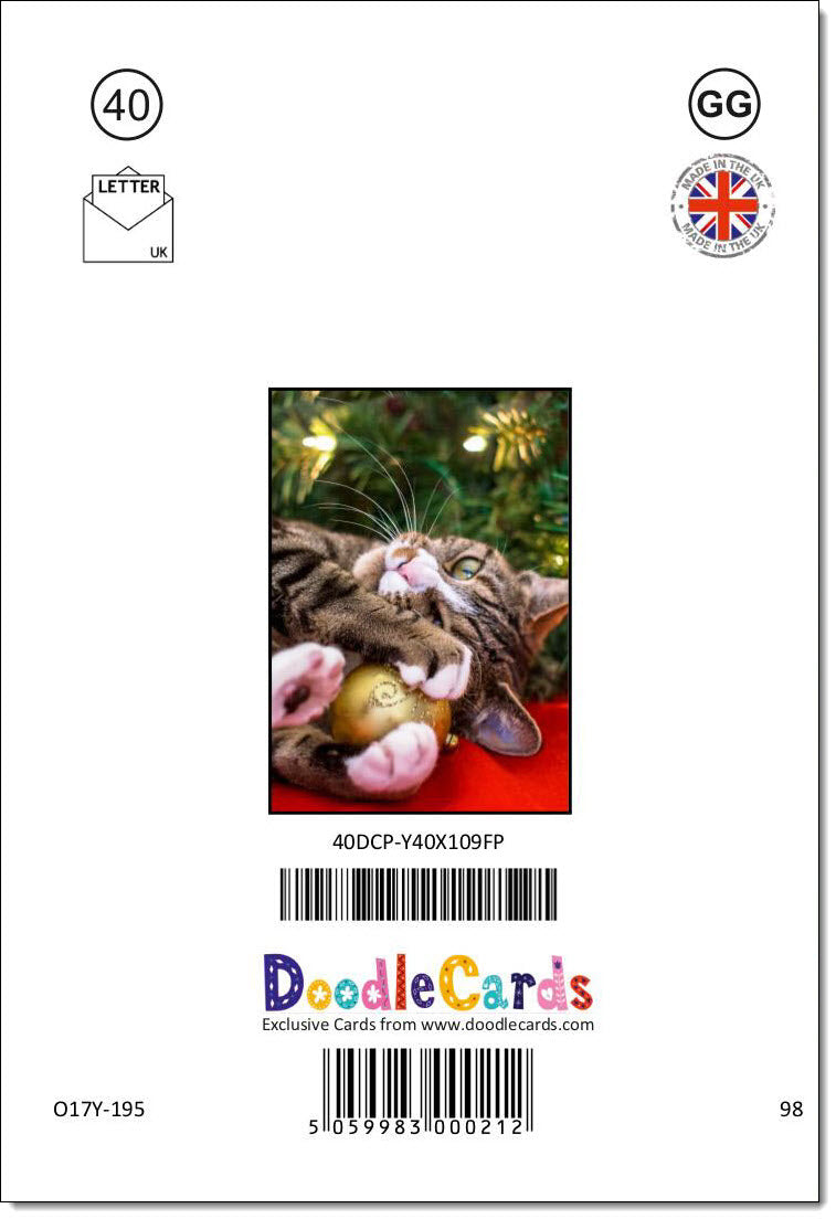 Pack of 10 Christmas Cards Tabby Cat playing with Baubles