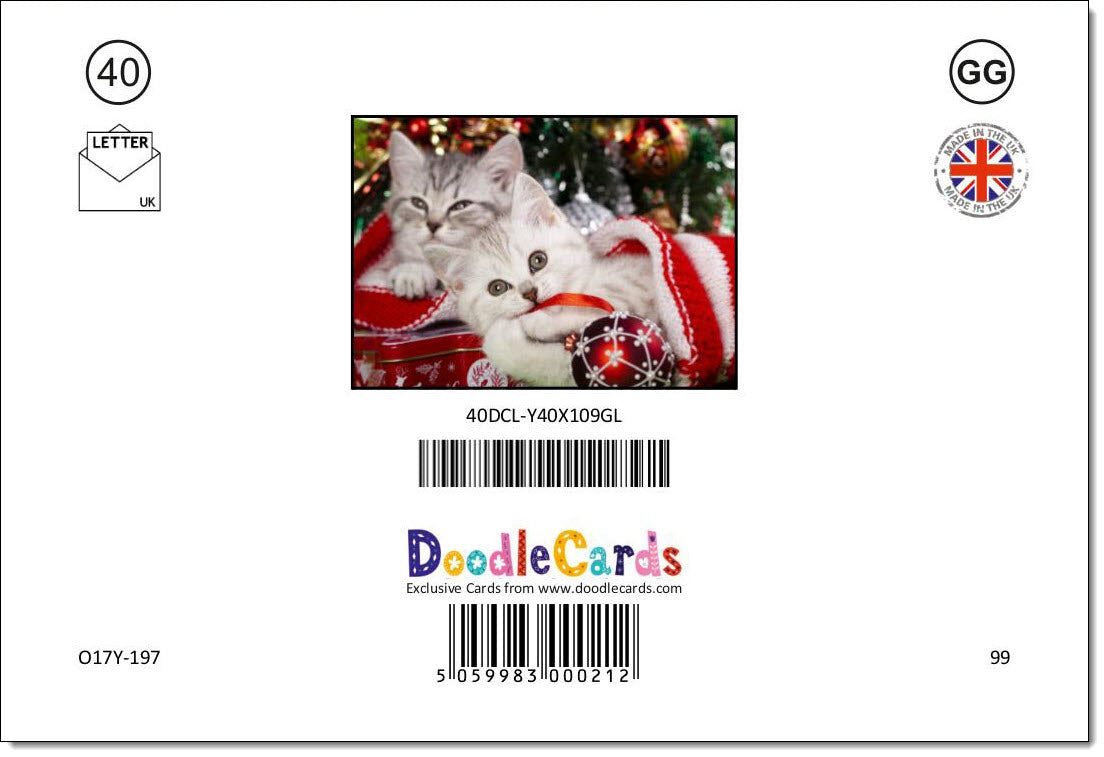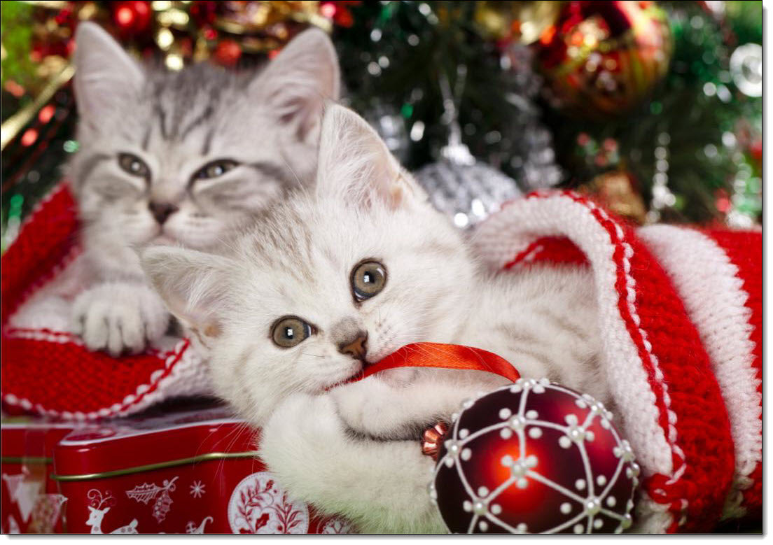 Pack of 10 Christmas Cards Two Kittens under the Tree